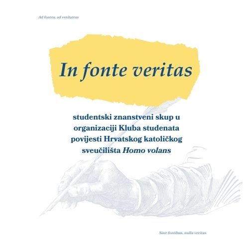 The History Student Club of the Catholic University of Croatia Homo volans is pleased to announce the holding of the student conference In fonte veritas, which will be held on Monday, April 28, 2025, in the "Bl. Alojzije kard. Stepinac" hall at the Catholic University of Croatia, on the occasion of the 15th anniversary of the University Department of History.