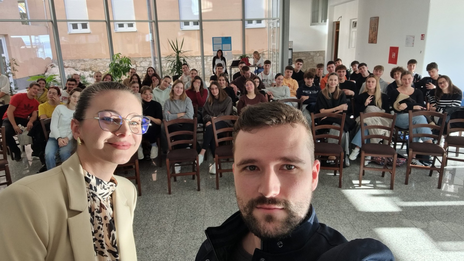 On Tuesday, 11 November 2025, Jelena and Daniel Štifanić, assistants from the Faculty of Engineering, held an engaging and inspiring lecture for the senior students of the Salesian Classical Gymnasium in Rijeka on the topic “The Application of Artificial Intelligence in Contemporary Society, Education, and Technology.”