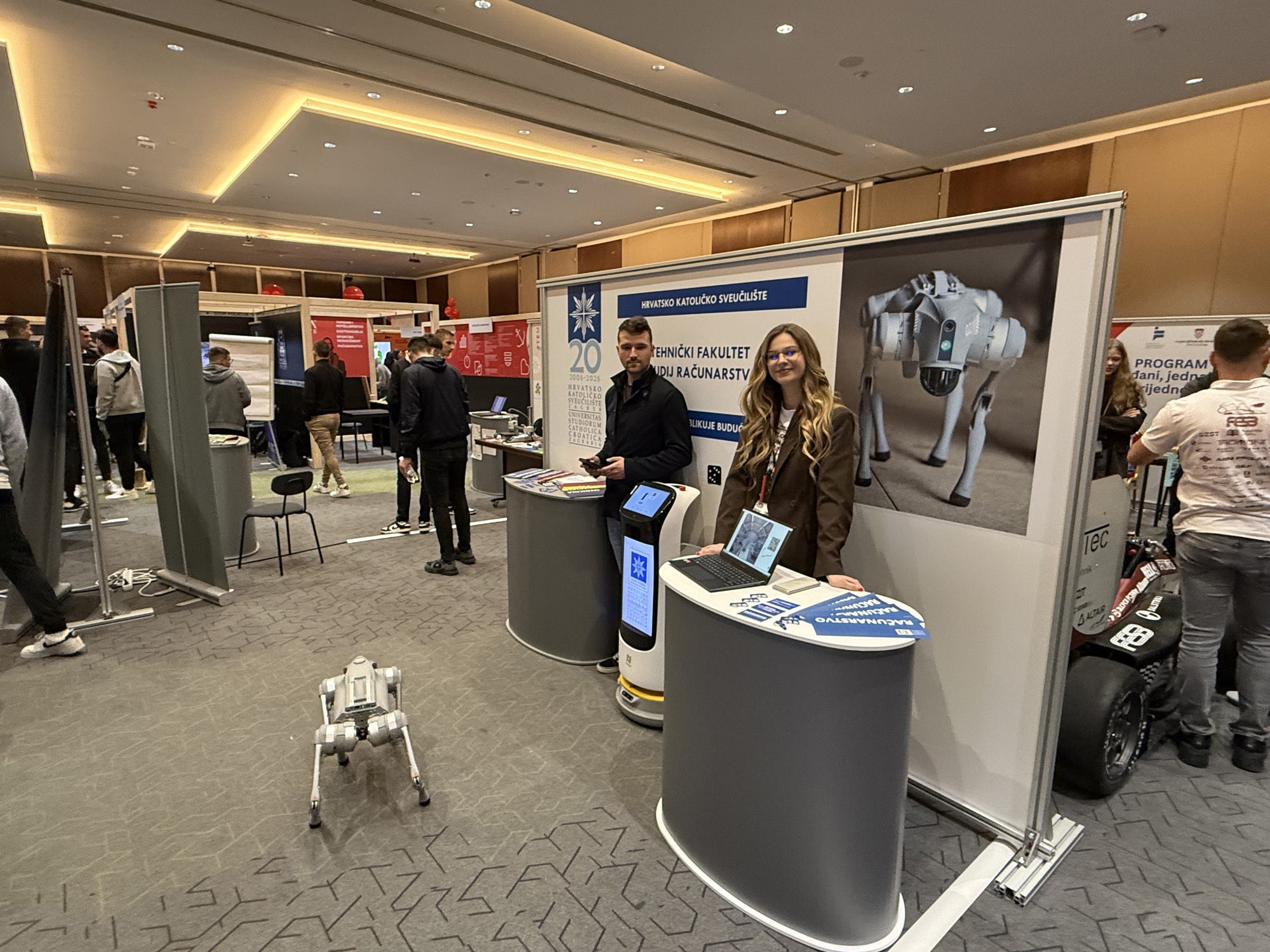 The Catholic University of Croatia participated in this valuable event for the fifth consecutive year. Numerous interested high school students were introduced to our study programmes by students Adrijana Kikić and Nikola Budor from the University Department of History, Maroje Goga from the Faculty of Engineering, as well as faculty members Jelena and Danijel Štifanić from the Faculty of Engineering, the Vice-Rector for Teaching Prof. Roko Mišetić, PhD, Assist. Prof. Vesna Mijoč, PhD, from the Faculty of Health Studies, and Toni Ćosić, PhD, from the University Department of Sociology. High school students, accompanied by parents and teachers, inquired about admission requirements, the course of study, and future career opportunities after graduation.