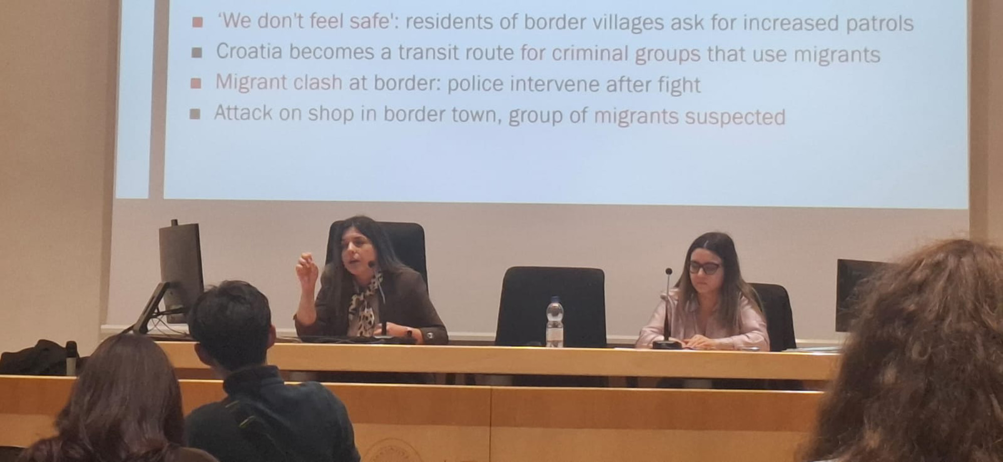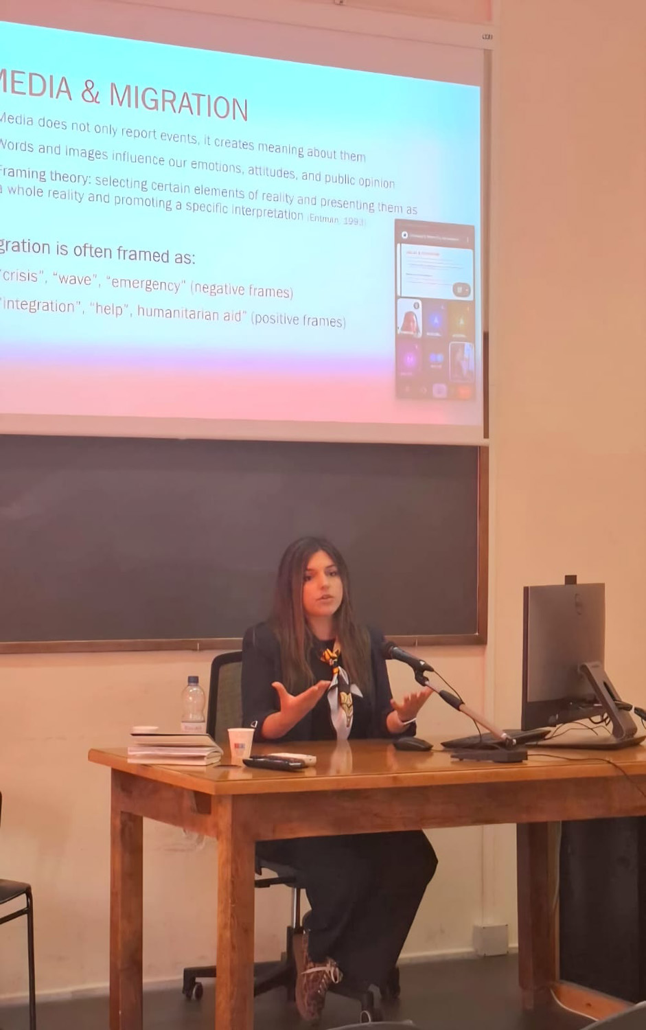 The first lecture, held on 13 April, focused on the role of media in shaping public perceptions of migrants and other vulnerable groups. Through concepts such as stereotypes, framing, and the construction of “otherness,” students analyzed how media narratives influence social boundaries and attitudes toward “us” and “them.” Particular attention was given to representations of migrants in European media, including comparative examples from the Croatian context, alongside a discussion on the ethical dimensions of reporting on migration.