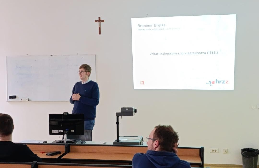 Using these examples, Dr. Regan also presented the results of the fieldwork. The third speaker was Branimir Brgles, Ph.D., also a project collaborator, who introduced the students to specific historical sources explored within the project—so-called pre-statistical serial sources. Dr. Brgles presented urbars and tithe registers from the Trakošćan estate dating from the mid-16th century. In the practical part of the workshop, students had the opportunity to learn how to read and analyze these complex sources.