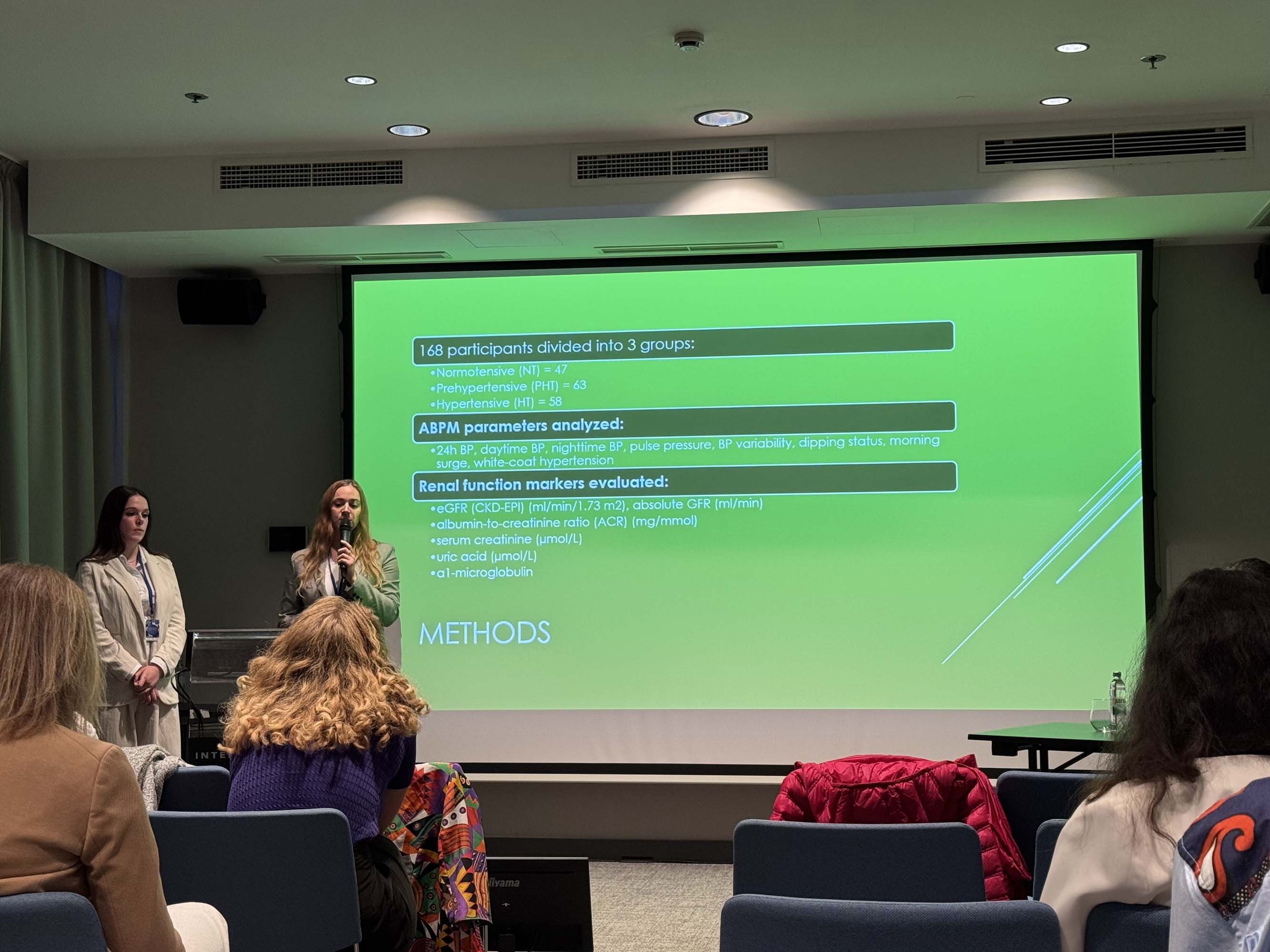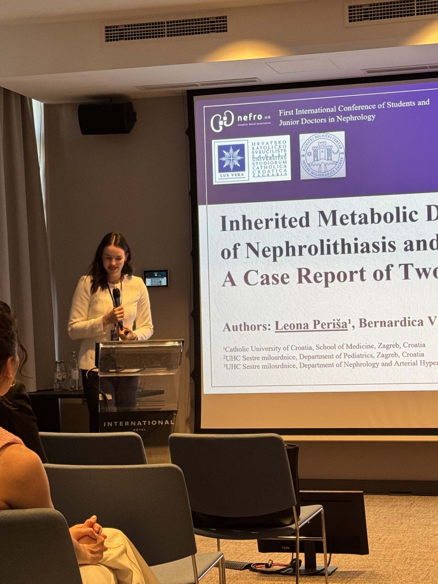 Students from the School of Medicine of the Catholic University of Croatia participated with a total of 14 abstracts in the field of nephrology, of which seven were selected for oral presentation and seven for poster presentation. The main mentor of the students was Assoc. Prof. Dr. Josipa Josipović, MD, and other colleagues from the MEF helped in the preparation of the students and the selection of topics: Assoc. Prof. Dr. Iva Ivanko, MD, Assoc. Prof. Dr. Ivo Darko Gabrić, MD, Assoc. Prof. Dr. Bernardica Valent Morić, MD, and assistant Vinka Vukosav, MD.