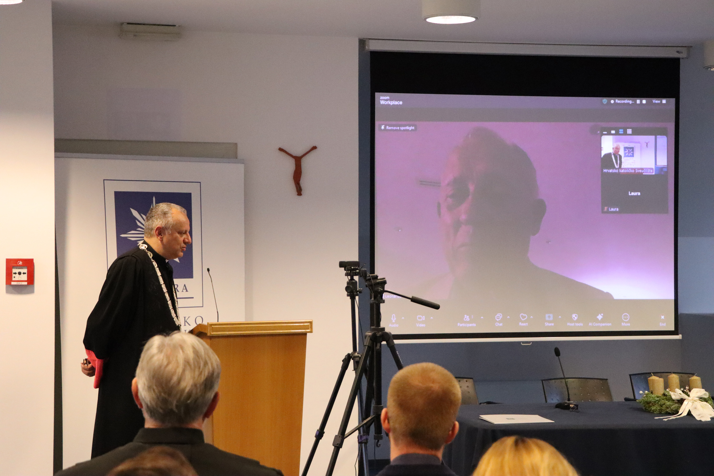 Via a video call from Australia, Mr. Marko Franović addressed the recipients, expressing pride in supporting young people and encouraging them to remain dedicated to their studies, highlighting that hard work brings many rewards. He also shared his satisfaction in watching the Catholic University of Croatia grow, develop, and nurture Croatian cultural heritage and identity.