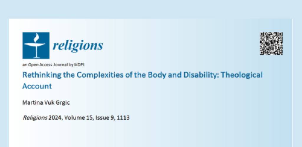 An article by Assistant Professor Martina Vuk Grgić entitled Rethinking the Complexities of the Body and Disability: Theological Account – MDPI has been published in the academic journal Religions. Since 2013, Dr. Vuk Grgić has been researching the themes of vulnerability and disability, and she was invited to contribute this paper as part of a special issue of Religions.