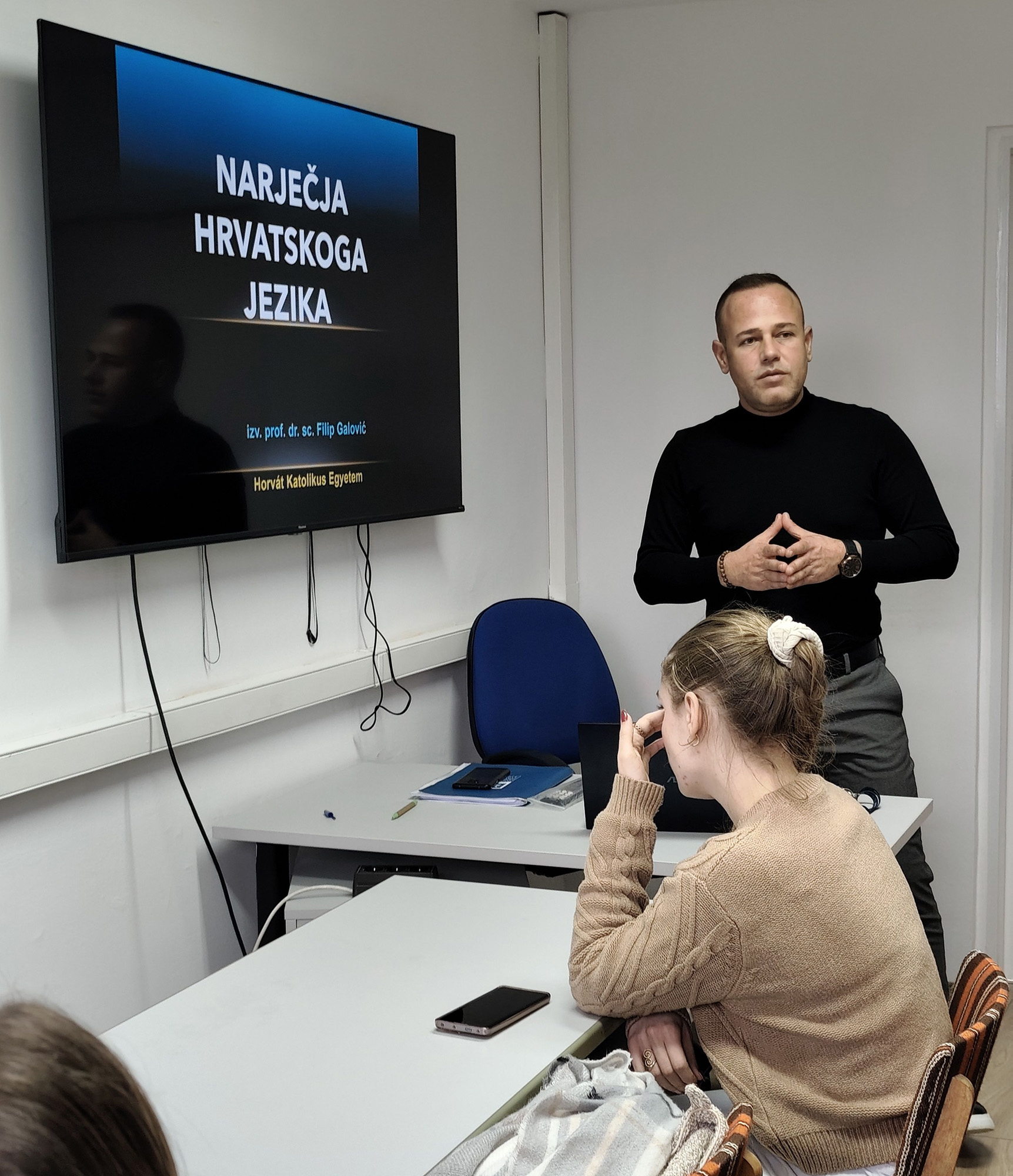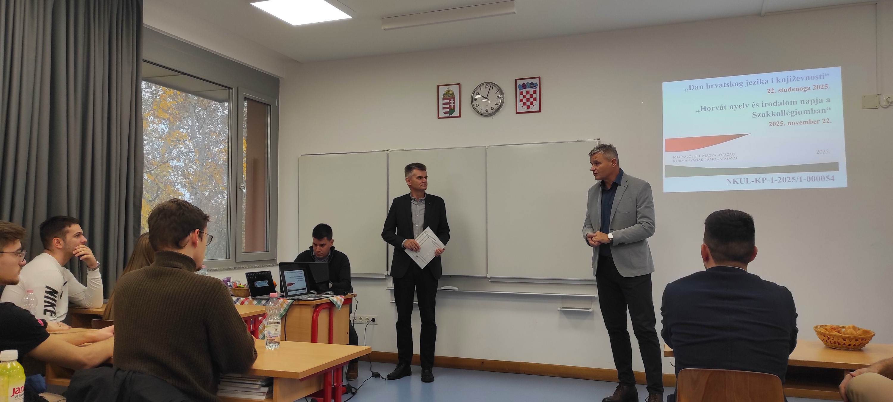 With regard to the Croatian language, literature, and culture, it should be noted that Pécs, a major Hungarian university centre, offers a programme in Croatian Studies. The Department of Croatian Language and Literature at the Faculty of Humanities of the University of Pécs has been active for more than 70 years. Of great importance for Croats in Hungary is also the Scientific Institute of Croats in Hungary. During his stay, Professor Galović met on several occasions with Dr Silvester Balić, a researcher at the Scientific Institute of Croats in Hungary, with whom he discussed the Institute’s activities, programmes, and future visions. He also met with the Director, Dr Stjepan Blažetin, who is simultaneously Head of the Department of Croatian Language and Literature. At the University, Professor Galović was warmly welcomed by Dr Timea Bockovac, a university professor at the Department of Croatian Language and Literature, who is likewise deeply committed to the preservation of the language, literature, and culture of Croats in Hungary, and who hosted Professor Galović in her classes. Professor Galović introduced students to dialectology as an important branch of linguistics, presented current research in Croatia, and lectured on the characteristics of the three Croatian dialects, whose linguistic features are also preserved in the speech of Croats in Hungary.