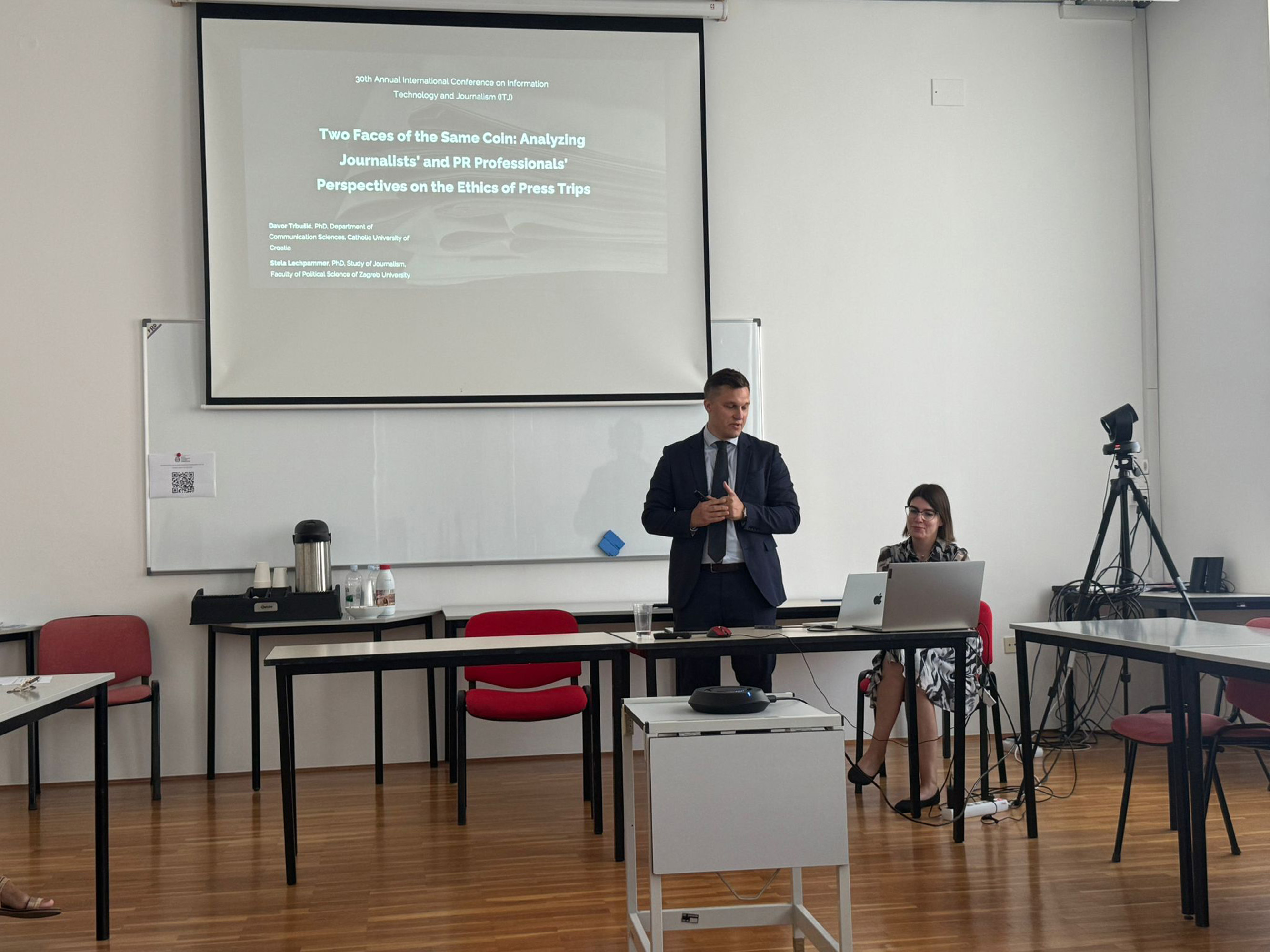 Faculty members from the Department of Communication Sciences, Prof. Dr. Igor Kanižaj, Assoc. Prof. Dr. Davor Trbušić, and Hana Kilijan, MA in Communication, took part in the 30th Annual International Conference on Information Technology and Journalism held in Dubrovnik from Monday, 15 September to Wednesday, 17 September 2025, organized by the Institute for New Media and e-Democracy.