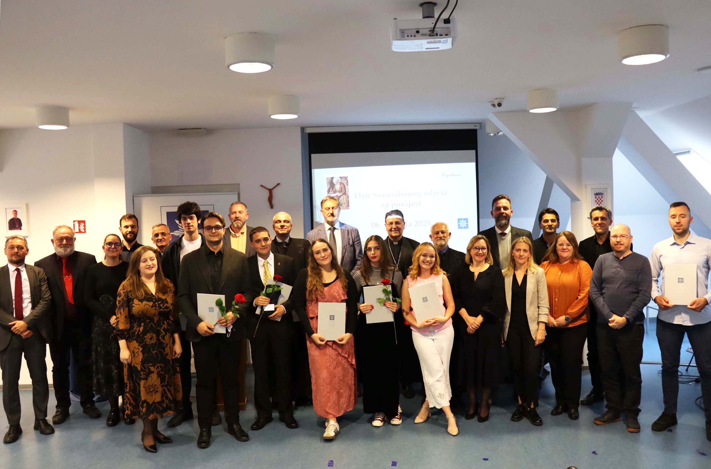 The anniversary celebration was also an opportunity to express gratitude to those who played a special role in the development of the Department over the past 15 years. A total of five certificates of appreciation were awarded: to Mons. Ivan Šaško, the first rector of the Catholic University of Croatia; Prof. Jure Krišto, the first head of the University Department; Assoc. Prof. Ines Sabotič, the first head of the University Department of History (2012–2014) and Vice-Rector for Education at the Catholic University of Croatia (2014–2020); Prof. Miroslav Akmadža, Director of the Croatian Institute of History in Zagreb, who has continuously encouraged collaboration between the University and the Institute; and Ms. Stanislava Rogić, special advisor to the rector, without whose guidance the Department’s successes would not have been possible.