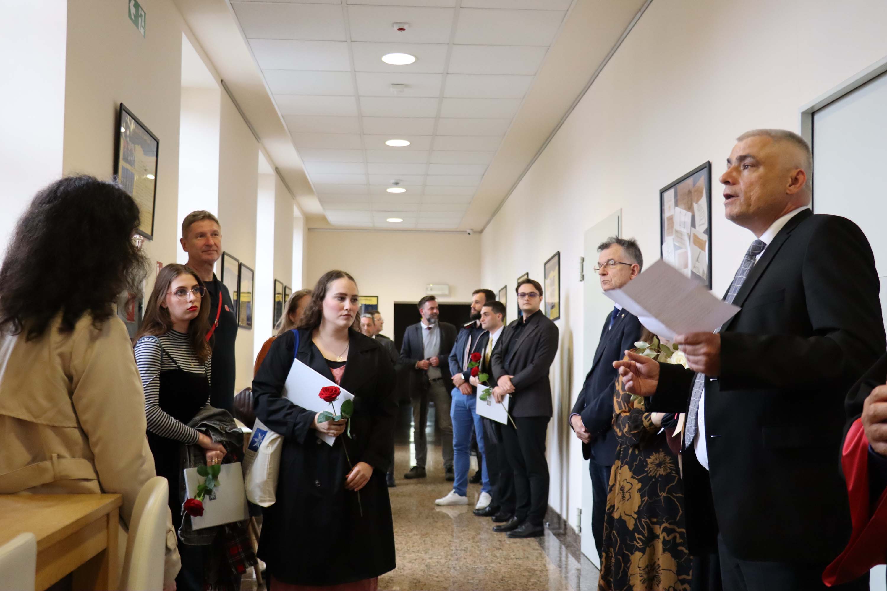Head of Department Kevo also greeted all those present and reported on the achievements of the University Department over the past year. He reflected on the growth and development over the past 15 years—from the first generation in 2010 and a single study program to today, when more than 300 students have completed their studies, and several single- and double-major programs are offered at the undergraduate, graduate, and doctoral levels. He also announced plans for additional reformed and new double-major programs. “A special thanks goes to all of you here today—each of you, in your own way, through advice, knowledge, dedicated work, or in some other form, has contributed to building our University Department,” Kevo concluded.