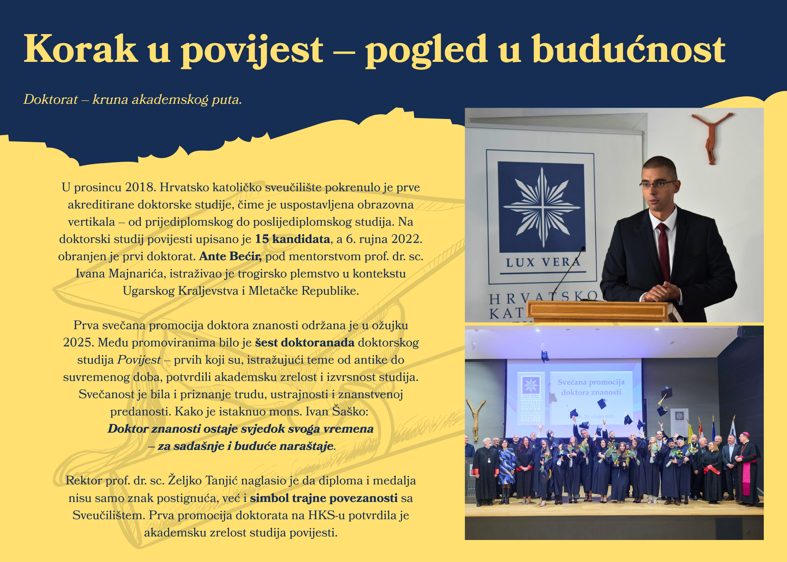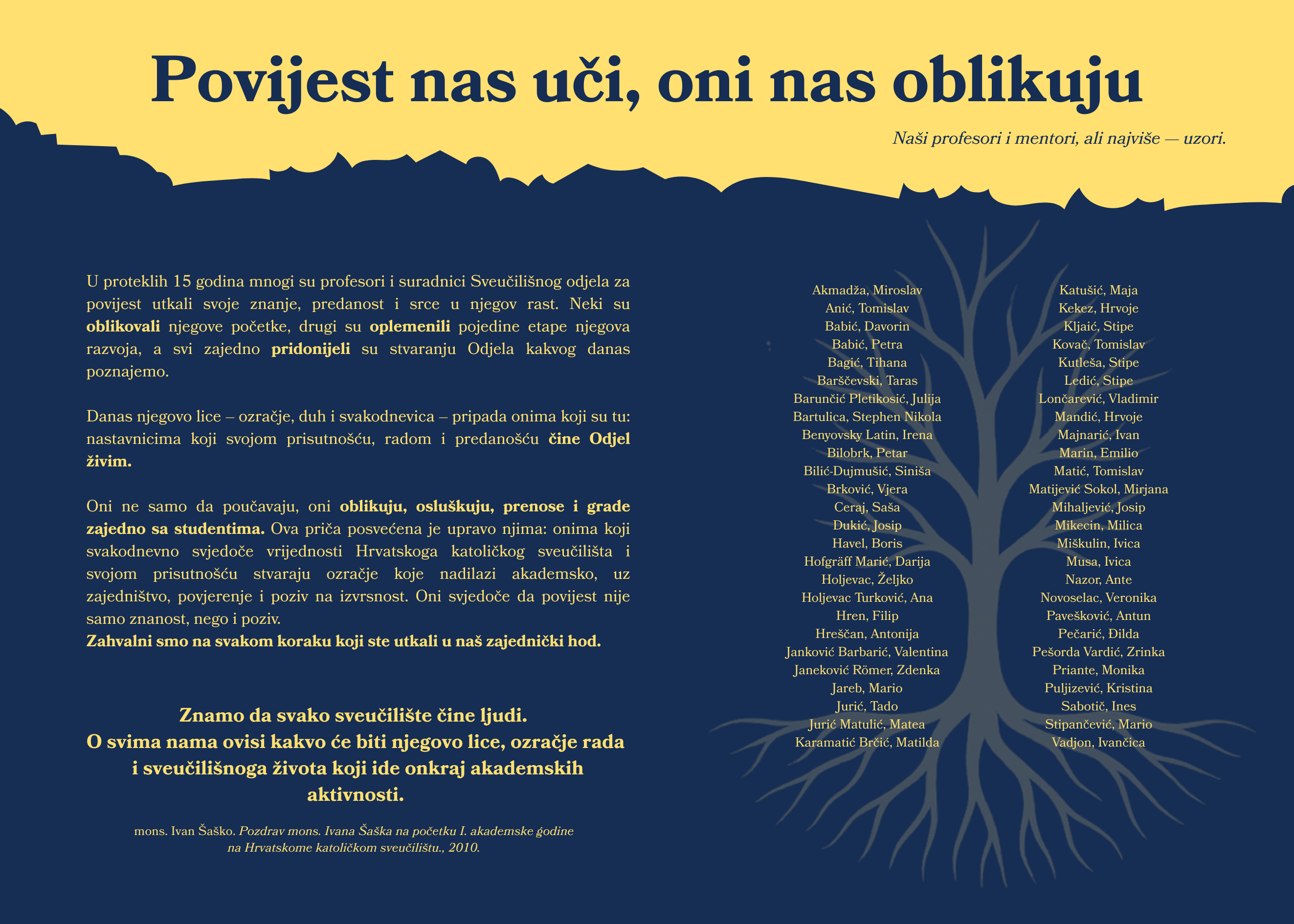 Vice-Rector Črpić recalled the early days—not only of organizing the history program but also of the University itself, as the two are closely connected. From its very beginning and the first meetings, the history program was planned as the University’s first study program, and fifteen years ago it opened its doors to its first generation of students. “Many people supported us in those efforts, and we are especially pleased to see that the first rector of the Catholic University of Croatia, now Auxiliary Bishop of Zagreb, Mons. Ivan Šaško, has joined us today. Fifteen years ago, we started with 41 students; today, our University has nearly 1,500, and the rest is history,” emphasized Vice-Rector Črpić.
