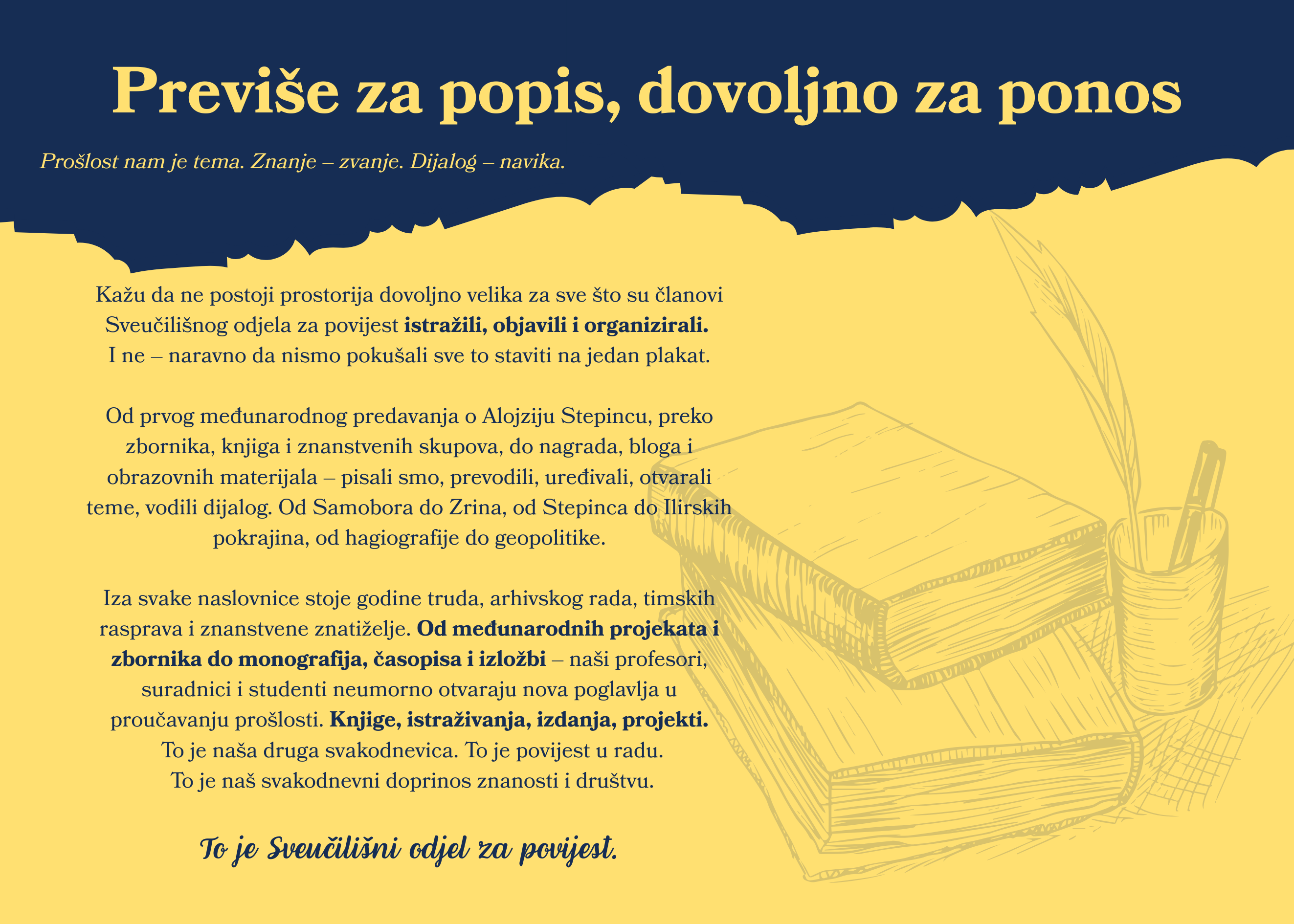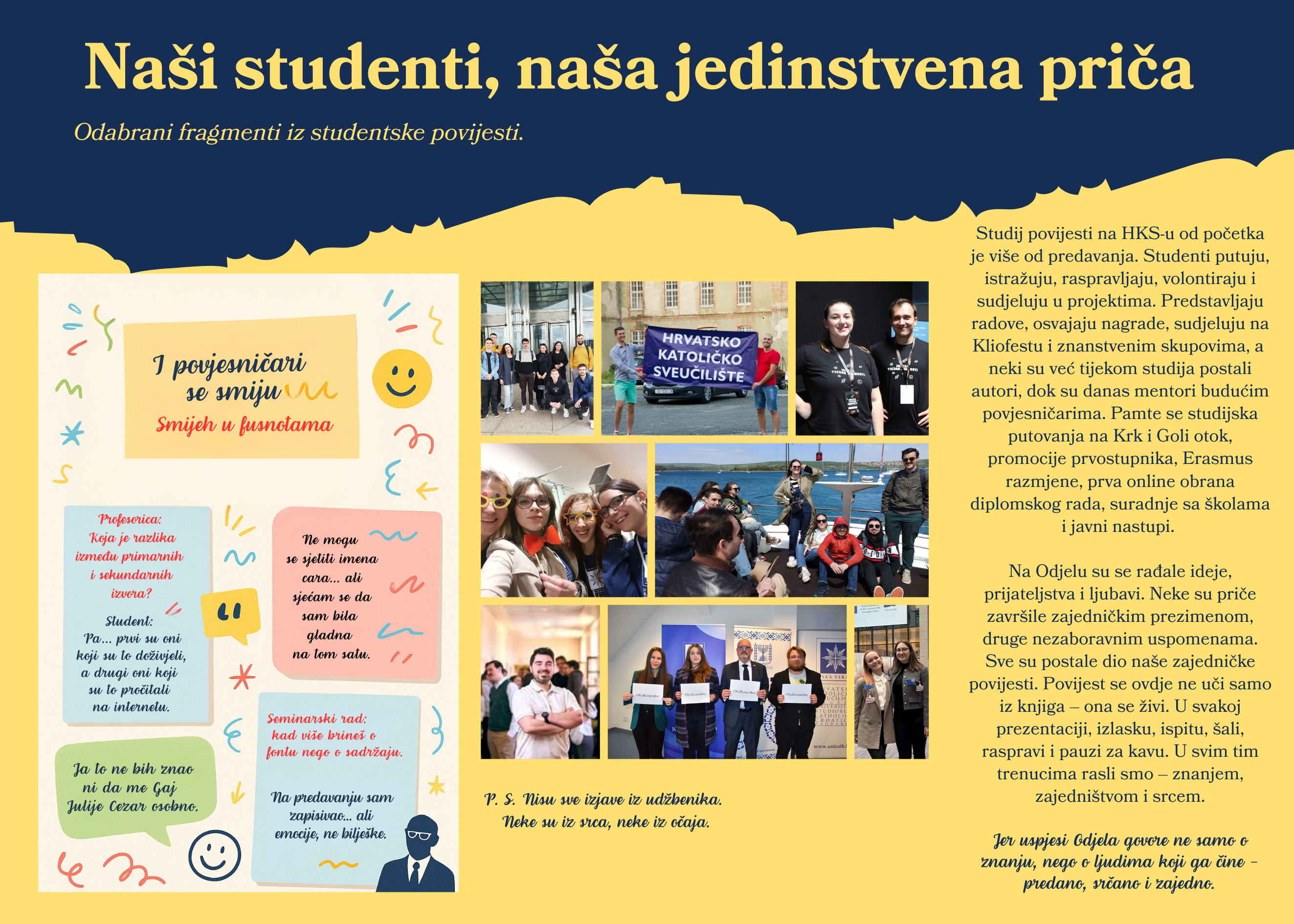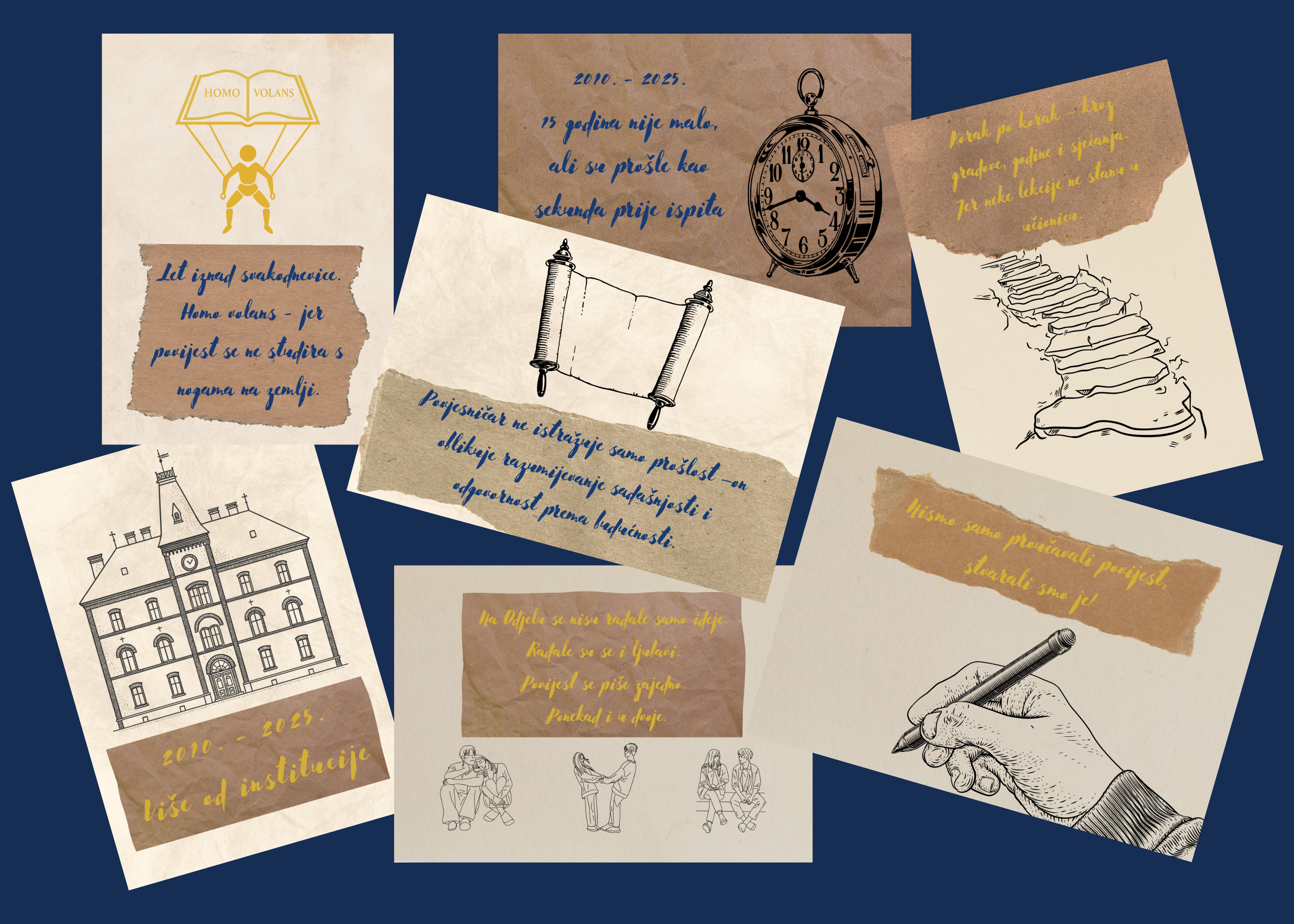 Following the conclusion of the formal academic ceremony, an exhibition titled 15 Years, 15 Stories was opened on the first floor of the University. Prepared by the students who are members of the History Students’ Club Homo volans, the exhibition offers insight into what the University Department of History represents—its most significant moments, milestones, and the people who have shaped it. Each of these fifteen stories offers a valuable testimony to the path they have built: the challenges they overcame, the achievements they proudly attained, and the sense of community that guided them. The exhibition was designed with special care and the intent to leave no one out or single anyone out, but rather to highlight the richness of shared experience that shaped them and forms the very heart of the Department.