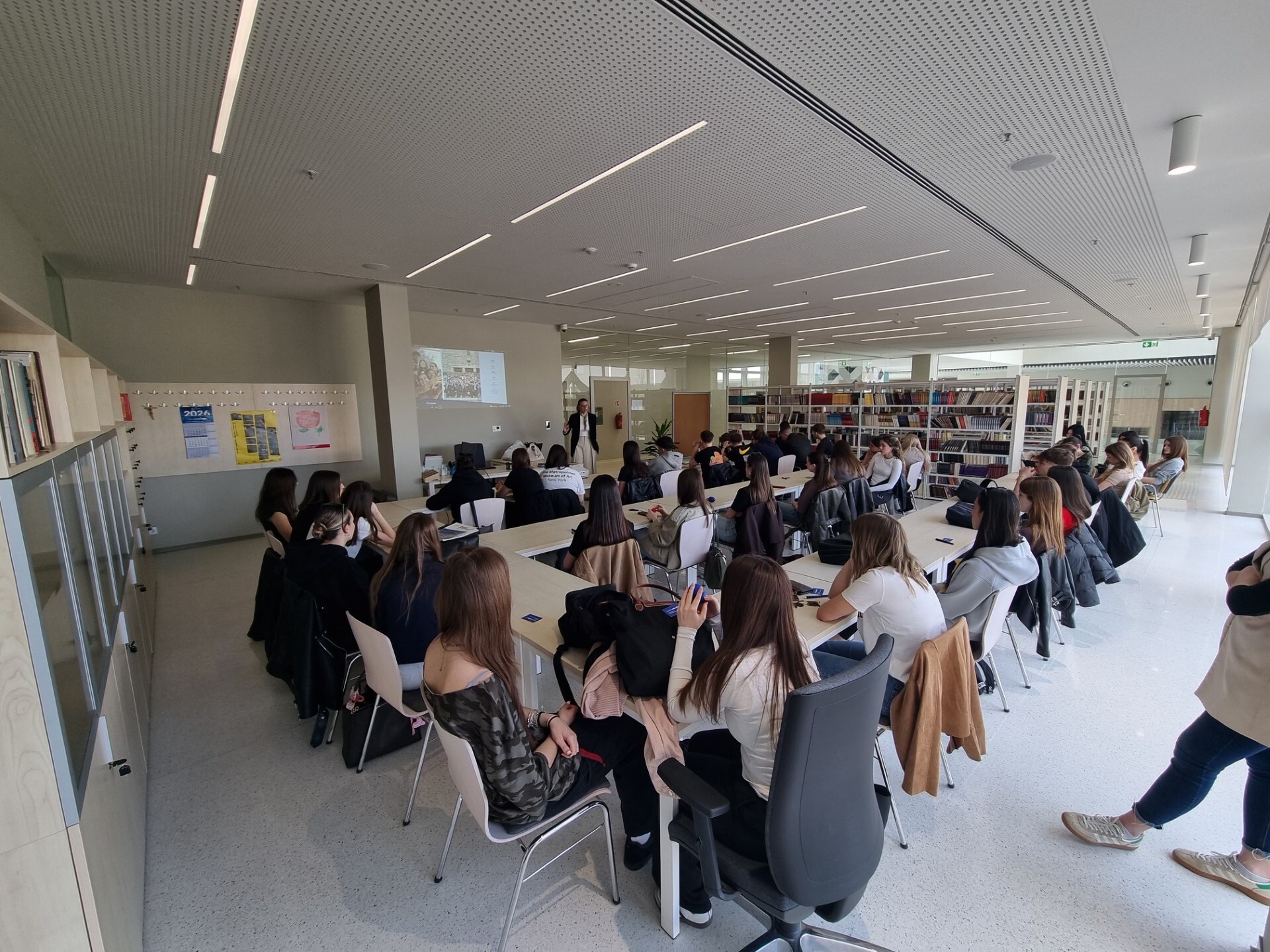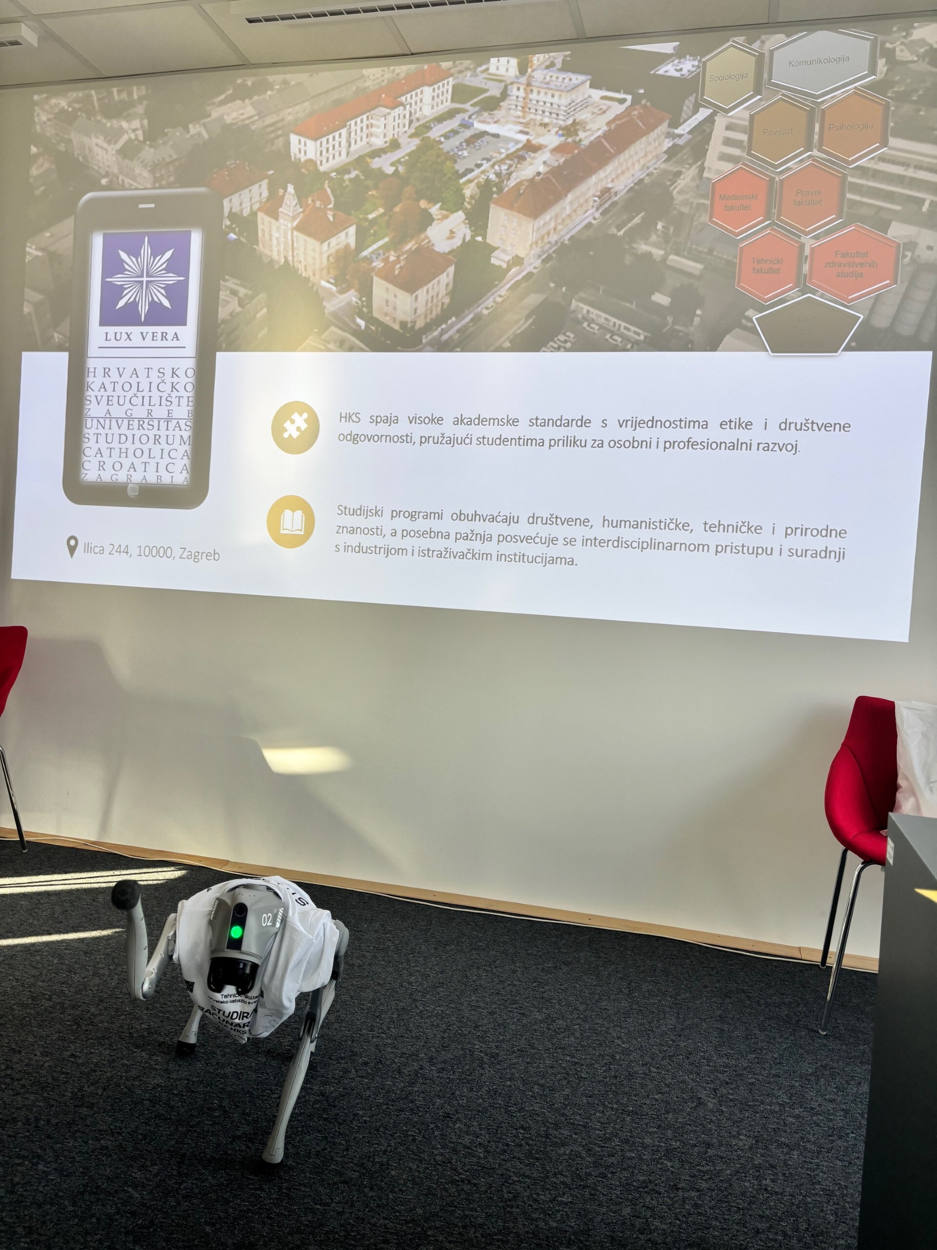 During the visit, students were introduced to all study programs offered by our University, with particular interest drawn to an interactive demonstration of a robot dog. The presentations were delivered by assistants from the Faculty of Engineering, Jelena and Daniel Štifanić, who introduced students to study opportunities, future career paths, and modern technologies used in teaching and research.