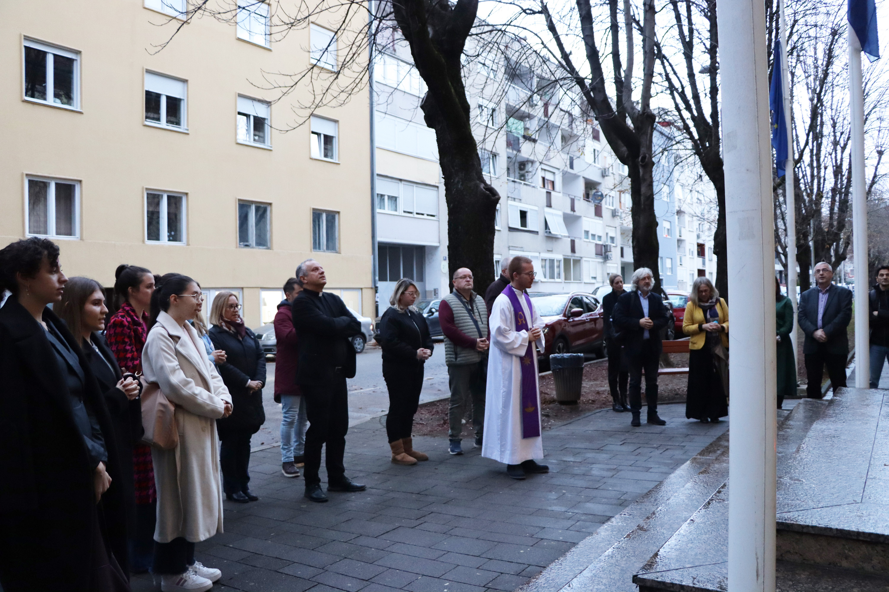 On the eve of Remembrance Day, 17 November, the University held a memorial programme consisting of a Mass for all fallen defenders and victims of the Homeland War, a prayer service in the chapel, and the lighting of candles in front of the University’s main entrance. After the lighting of candles, a screening of the docudrama “Škabrnja” by director and screenwriter Nada Prkačin was held in the Bl. Alojzije Stepinac Hall.