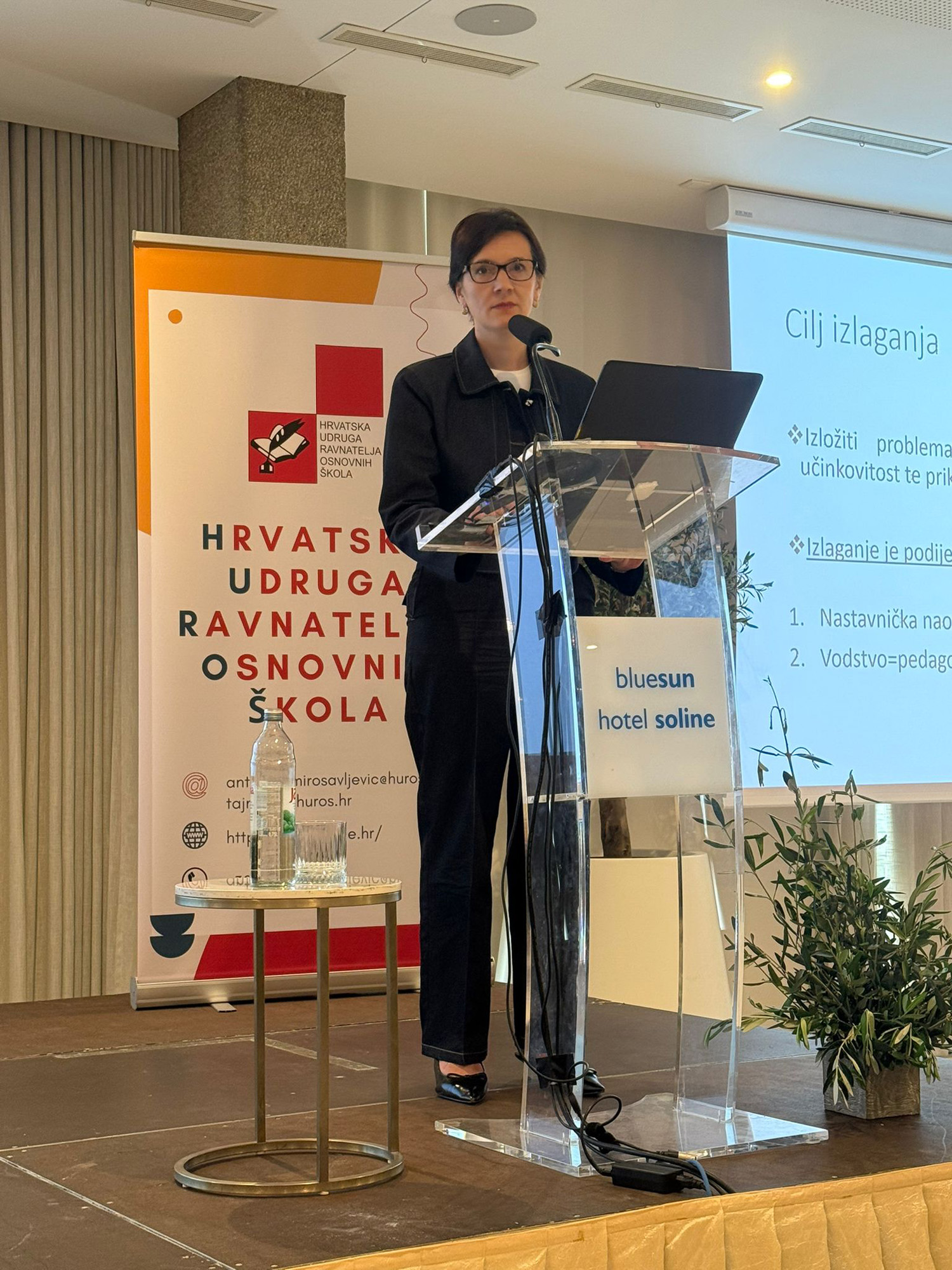 Vjera Brković, lecturer at the Department of History, participated in the National Professional Conference organized by the Croatian Association of Croatian Principals (HUROŠ) titled “School Rhythm – A Conference on Emotional Resilience and Leadership”, held in Brela from 19 to 22 October 2025. The conference was co-organized by the Ministry of Science, Education and Youth and CARNET. HUROŠ focuses on improving the quality of primary education in the Republic of Croatia and provides support to schools by organizing seminars and professional gatherings.