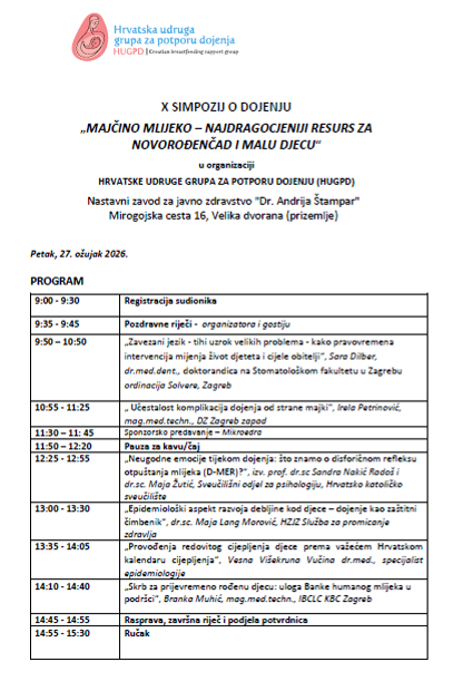 Faculty members from the University Department of Psychology, Assoc. Prof. Sandra Nakić Radoš, PhD, and Maja Žutić, PhD, delivered a presentation on Friday, 27 March 2026, at the 10th Symposium on Breastfeeding organized by the Croatian Association of Breastfeeding Support Groups (HUGPD).