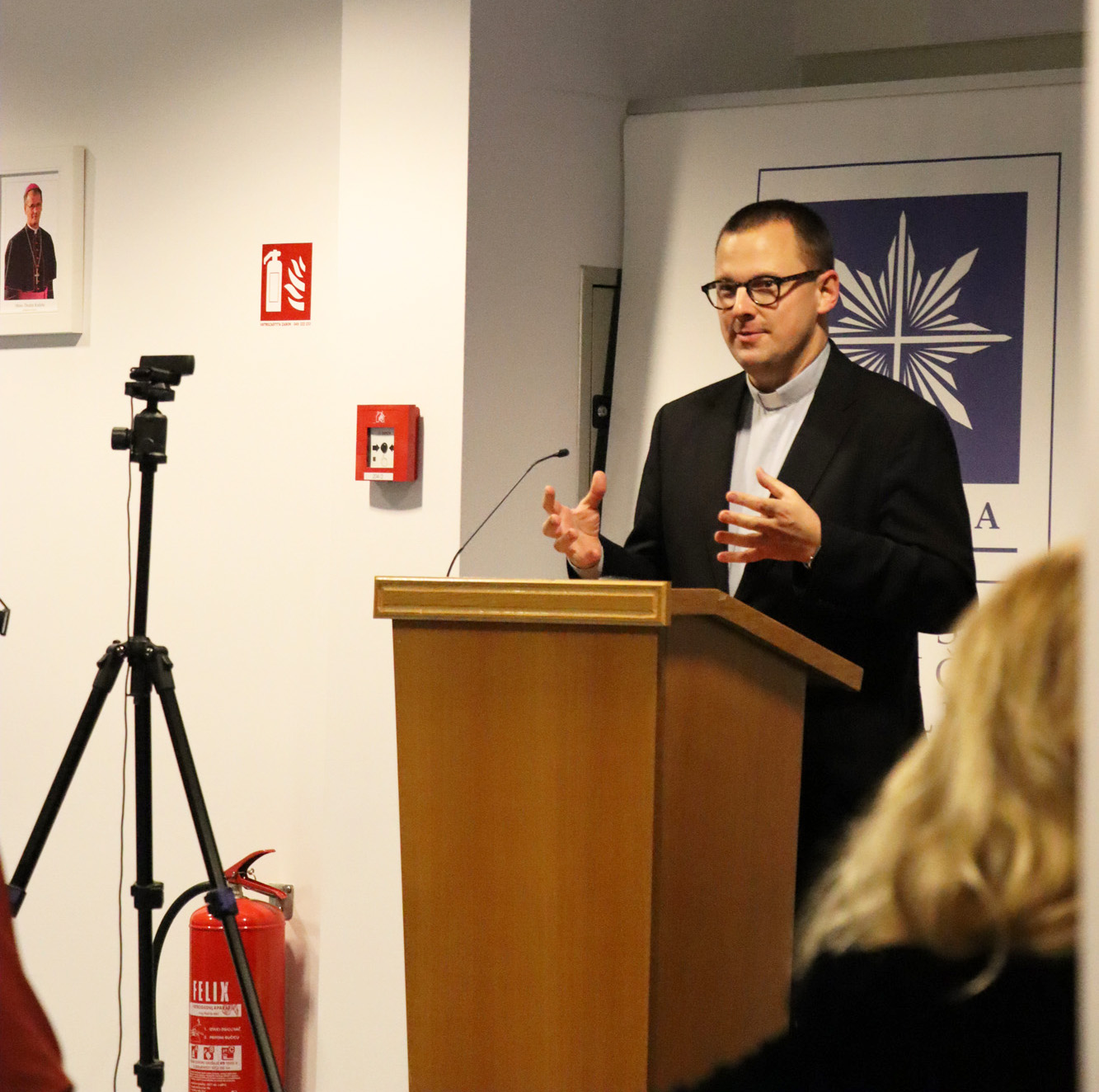 Theology, he explained, is a living dialogue between the preservation of faith and its development. Church tradition is not a return to the past, but the transmission of divine revelation that includes responsibility and creative engagement in the present. Through apostolic tradition, unity of faith is preserved, while continued interpretation ensures growth in understanding, allowing faith to remain living and relevant across cultures and epochs. Citing St. Vincent of Lérins, Rađa reminded the audience that tradition calls for progress, but not change in the meaning of faith itself—truth may be expressed in new ways, but the essence of the Gospel must remain unchanged.