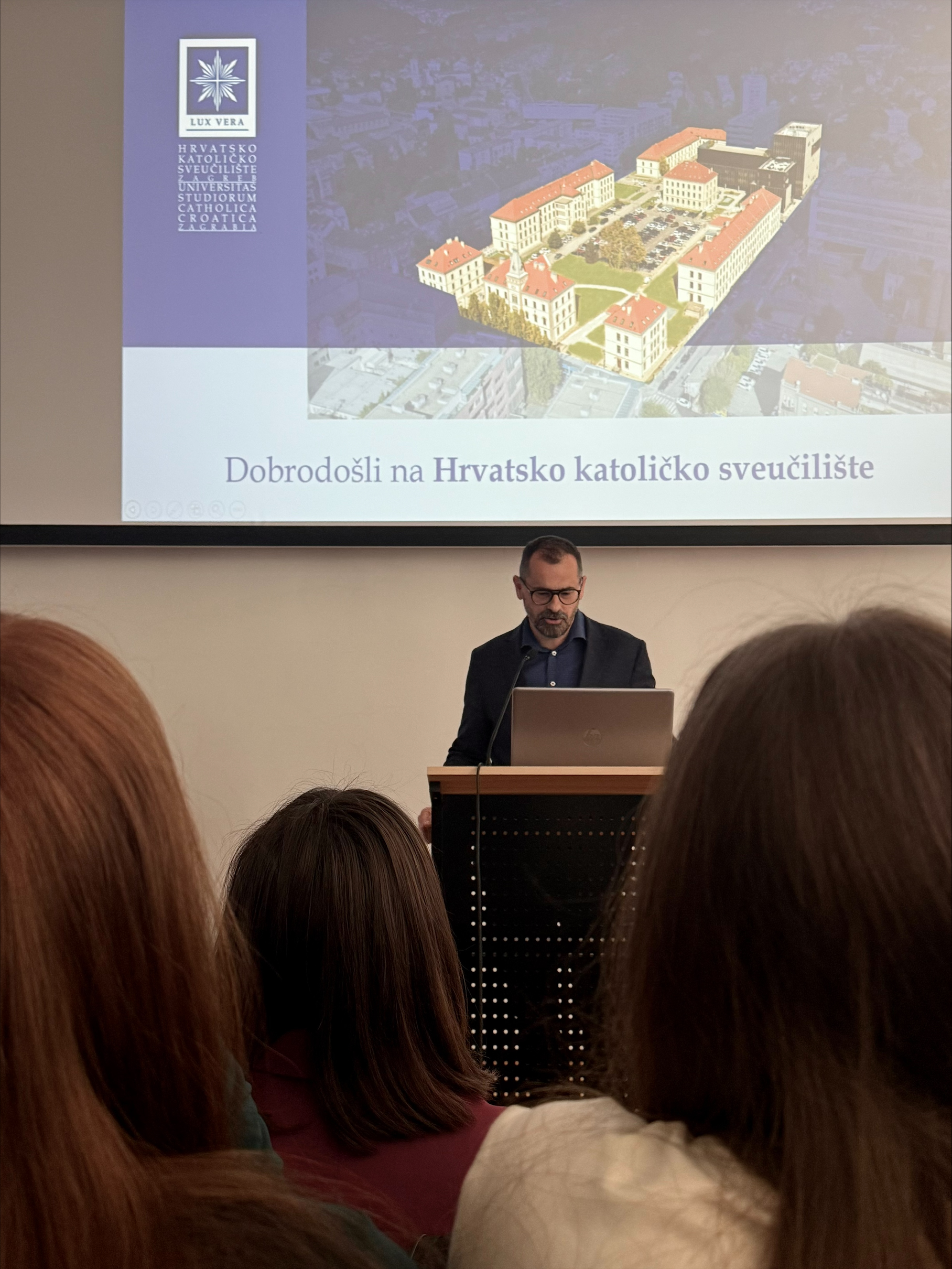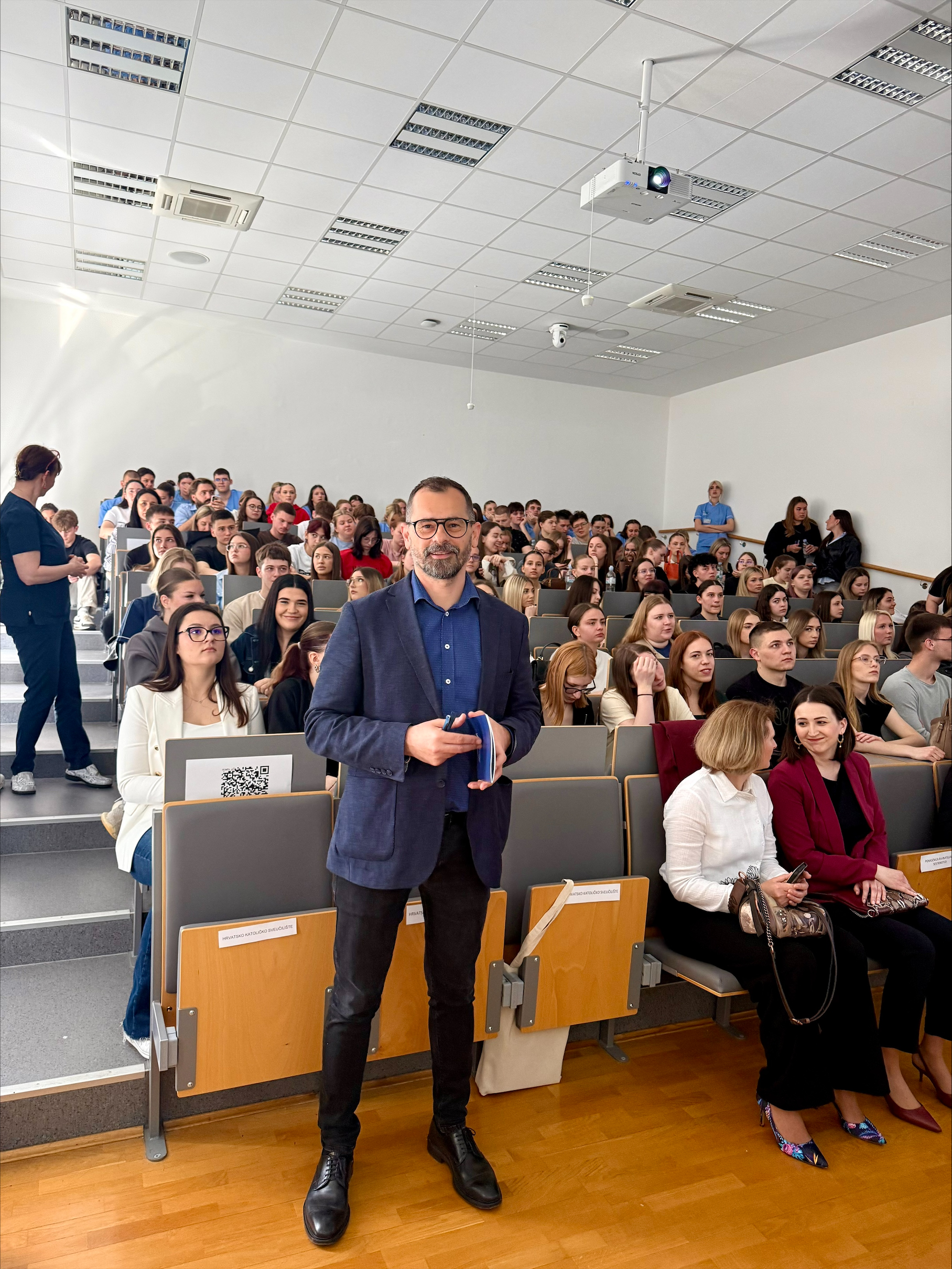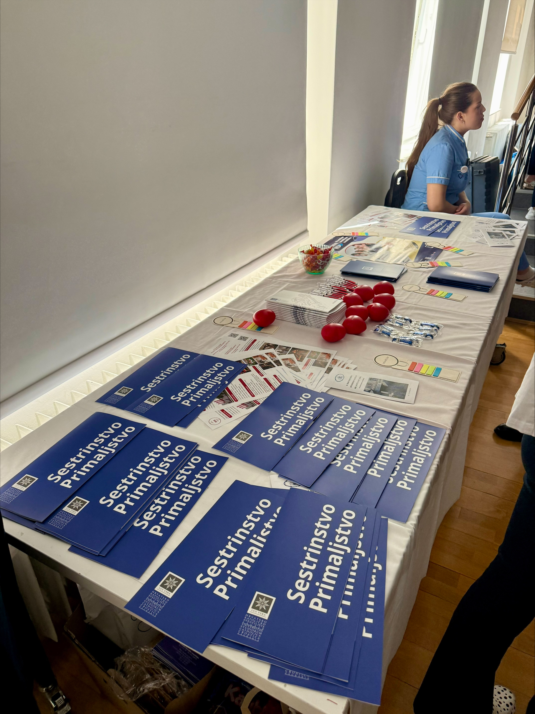 The University, along with its nursing and midwifery programmes offered at the Faculty of Health Studies, was presented by students and members of the CUC Nursing Students’ Club Nutrix, Jelena Mijić (President) and Matko Matišić. They were joined by the Dean of the Faculty, Assist. Prof. Ivica Matić, PhD, and Assistant Marin Čargo, who introduced the Faculty’s academic and research activities.