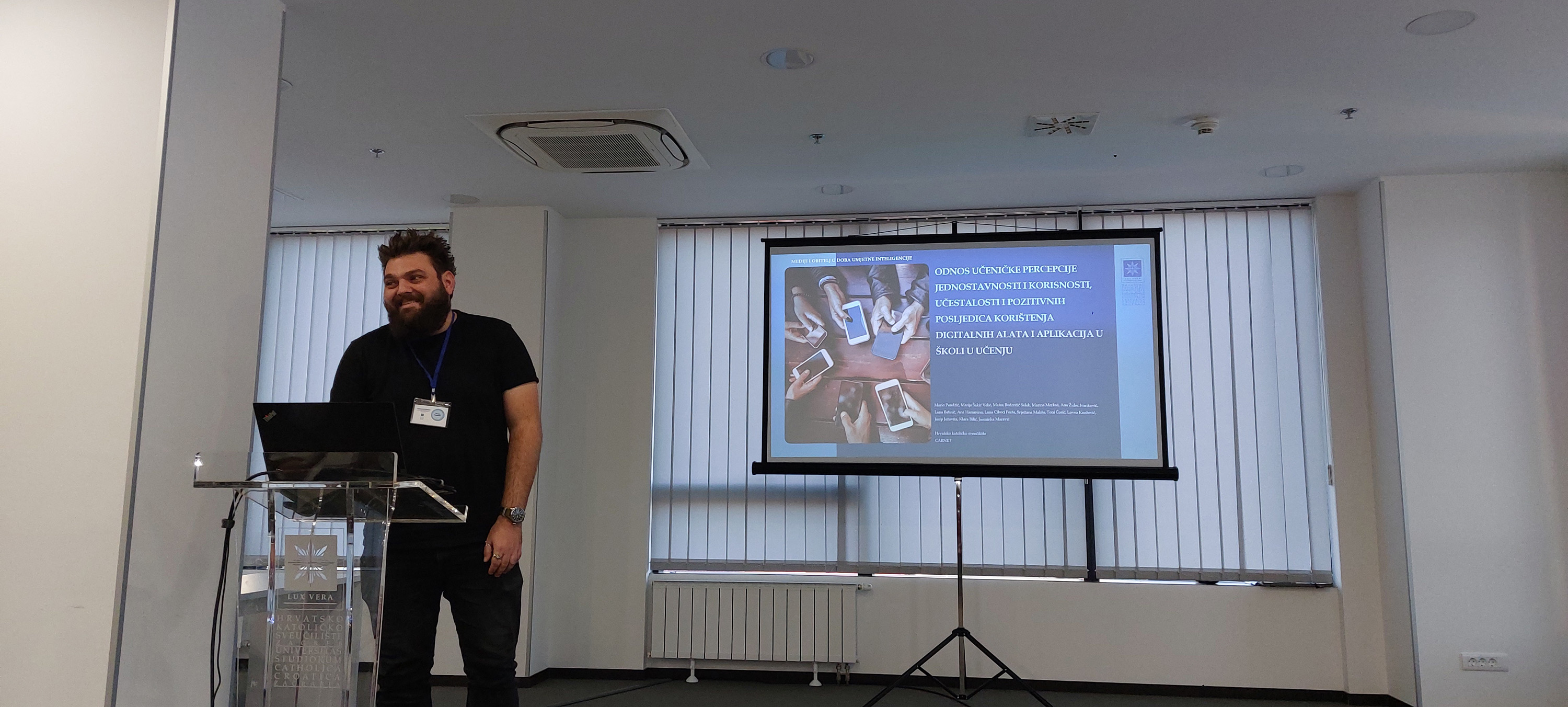 Docentica Lana Batinić izložila je rad pod naslovom „Umjetna inteligencija u školama iz perspektive roditelja: Uloga digitalne i UI pismenosti“. U izlaganju se fokusirala na roditeljsku percepciju uvođenja i korištenja umjetne inteligencije u obrazovanju djece, koristeći podatke prikupljene upitnicima i fokus grupama. Docent Mario Pandžić izložio je rad pod naslovom „Odnos učeničke percepcije jednostavnosti i korisnosti, učestalosti i pozitivnih posljedica korištenja digitalnih alata i aplikacija u školi i učenju“. U izlaganju se fokusirao na podatke prikupljene upitnikom za učenike. Izvanredna profesorica Marija Šakić Velić izložila je rad pod naslovom „Neke odrednice nastavničke percepcije korisnosti digitalnih tehnologija u učenju i poučavanju“. U izlaganju se usmjerila na podatke prikupljene upitnikom za nastavnike.