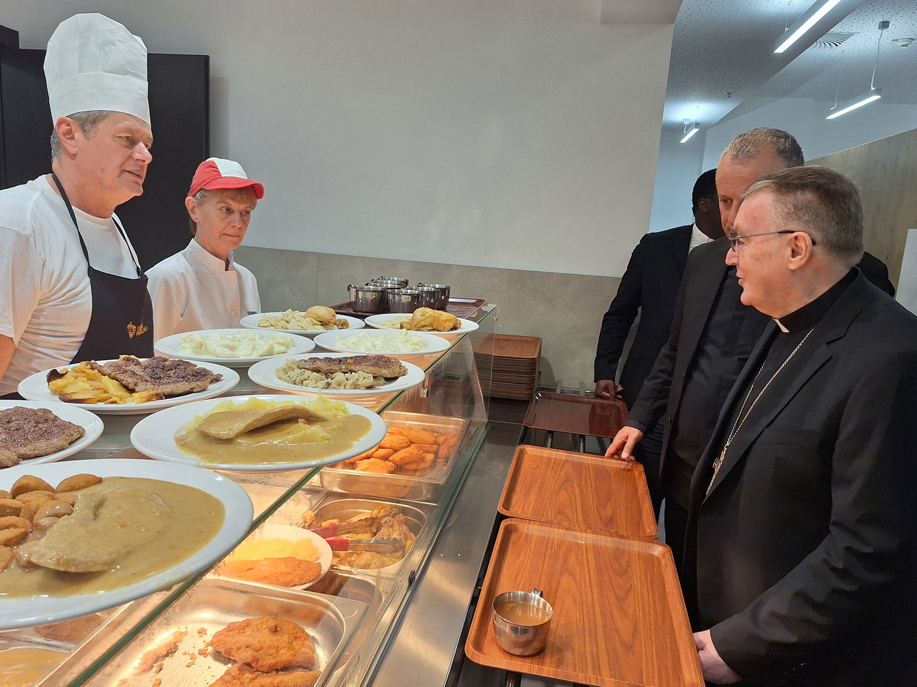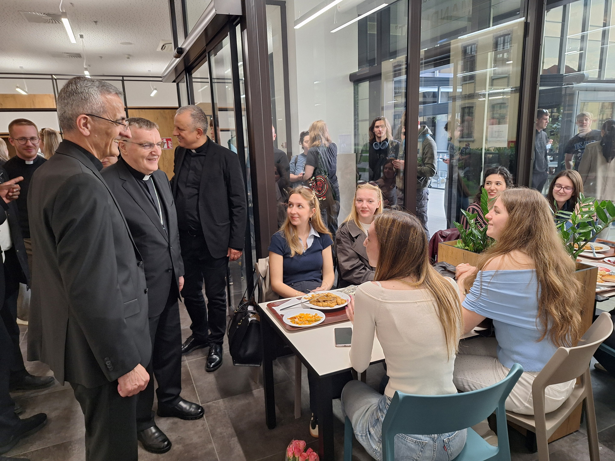 Nakon obilaska, kardinal se s upravom Sveučilišta zadržao na ručku u novome studentskom restoranu Manducath na sveučilišnom kampusu. Tom se prigodom susreo i sa studentima te s djelatnicima restorana, koji su ga srdačno i s radošću pozdravili.