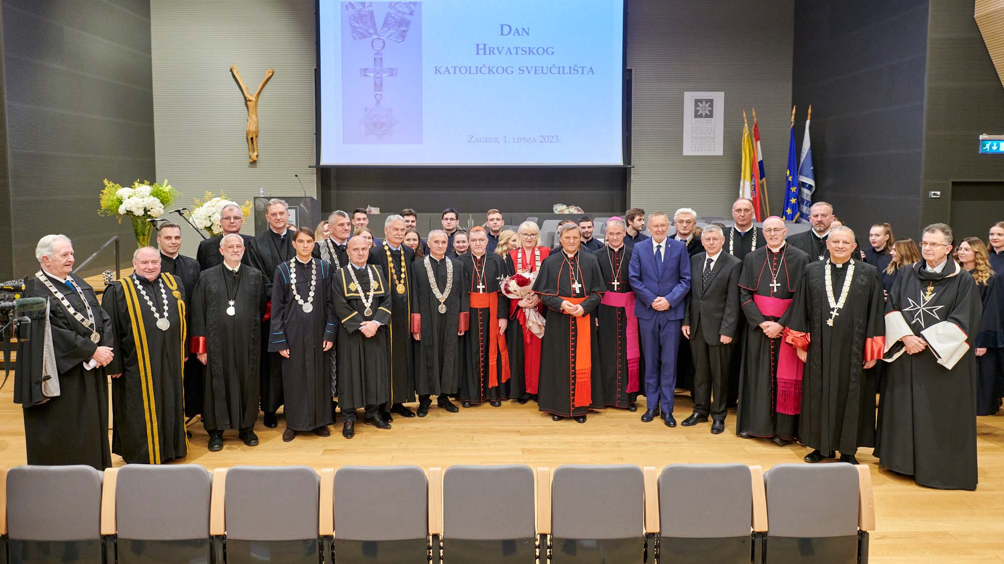 Svečanom akademskom činu po prvi put je prisustvovao novi Veliki kancelar Hrvatskog katoličkog sveučilišta mons. Dražen Kutleša, zagrebački nadbiskup, zajedno s kardinalom Josipom Bozanićem. Svečanosti je također prisustvovao apostolski nuncij u Republici Hrvatskoj mons. Giorgio Lingua te hrvatski nadbiskupi i biskupi monsinjori Đuro Hranić i Mate Uzinić, Milan Zgrablić, Antun Škvorčević, Vjekoslav Huzjaka, Ivica Petanjek, Jure Bogdan, Zdenko Križić, Tomislav Rogić, Božo Radoš, Ivan Šaško i Mijo Gorski te generalni tajnik HBK-a preč. Krunoslav Novak.