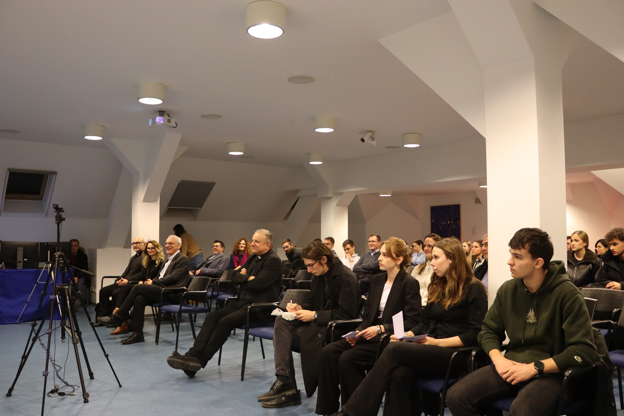 U srijedu, 25. veljače 2026. godine, u dvorani „Blaženi Alojzije kard. Stepinac“, održana je treća u nizu teoloških tribina „Duhovnost u vrijeme digitalnog propovijedanja“. Tribinu je vodio doc. dr. sc. Odilon-Gbènoukpo Singbo u organizaciji dr. sc. Kristine Vujice, a uz profesore i studente HKS-a, sudjelovali su i učenici I. ekonomske gimnazije i XV. Gimnazije iz Zagreba.