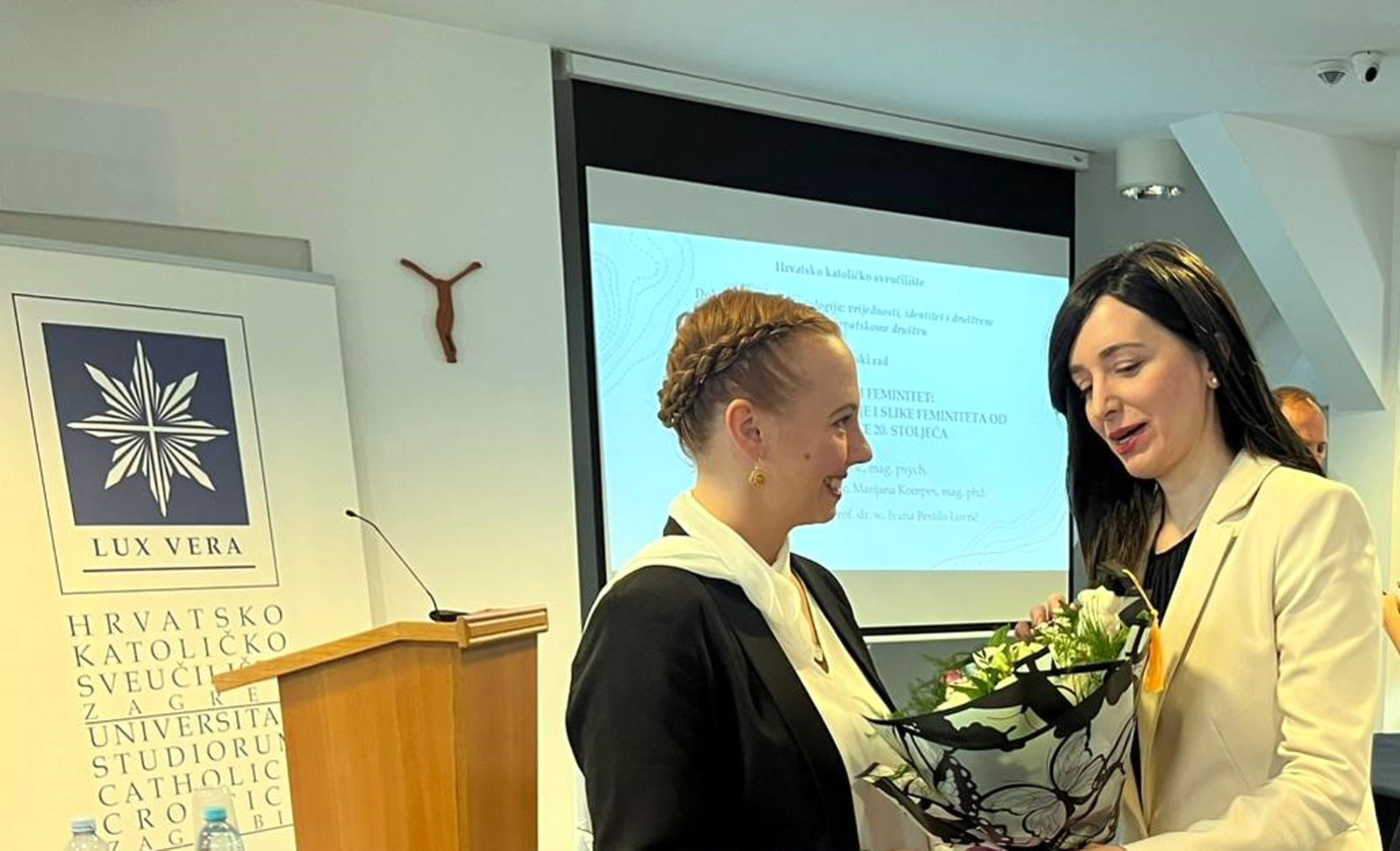 U petak 26. rujna 2025. doktorandica Ivna Ivanković uspješno je obranila doktorski rad na temu Vrijednosti i feminitet: vrijednosne orijentacije i slike feminiteta od druge polovice 20. stoljeća u sklopu doktorskog studija Sociologija: vrijednosti, identitet i društvene promjene u hrvatskom društvu na Hrvatskom katoličkom sveučilištu pod mentorstvom izv. prof. dr. sc. Marijane Kompes, mag. phil., a komentorica je bila izv. prof. dr. sc. Ivana Brstilo Lovrić. Povjerenstvo za obranu doktorskog rada činili su doc. dr. sc. Damir Mravunac, predsjednik te članovi prof. dr. sc. Stjepan Kušar te prof. dr. sc. Anka Mišetić, Arhitektonski fakultet Sveučilišta u Zagrebu.