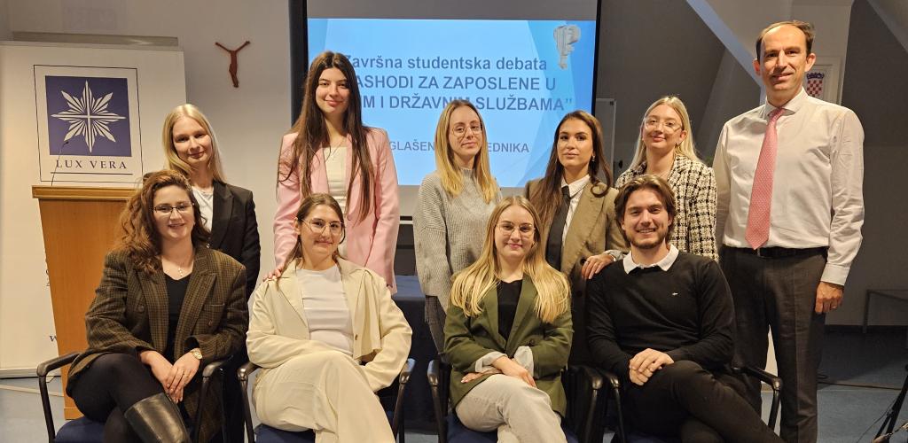 Pod stručnim vodstvom izv. prof. dr. sc. Romana Šubića studenti su kritički raspravljali o rashodima za zaposlene u javnim i državnim službama. Tema ovogodišnje debate odabrana je zbog svoje aktualnosti, budući da godišnji pregovori Vlade i sindikata do kraja 2025. godine još uvijek nisu dovršeni.