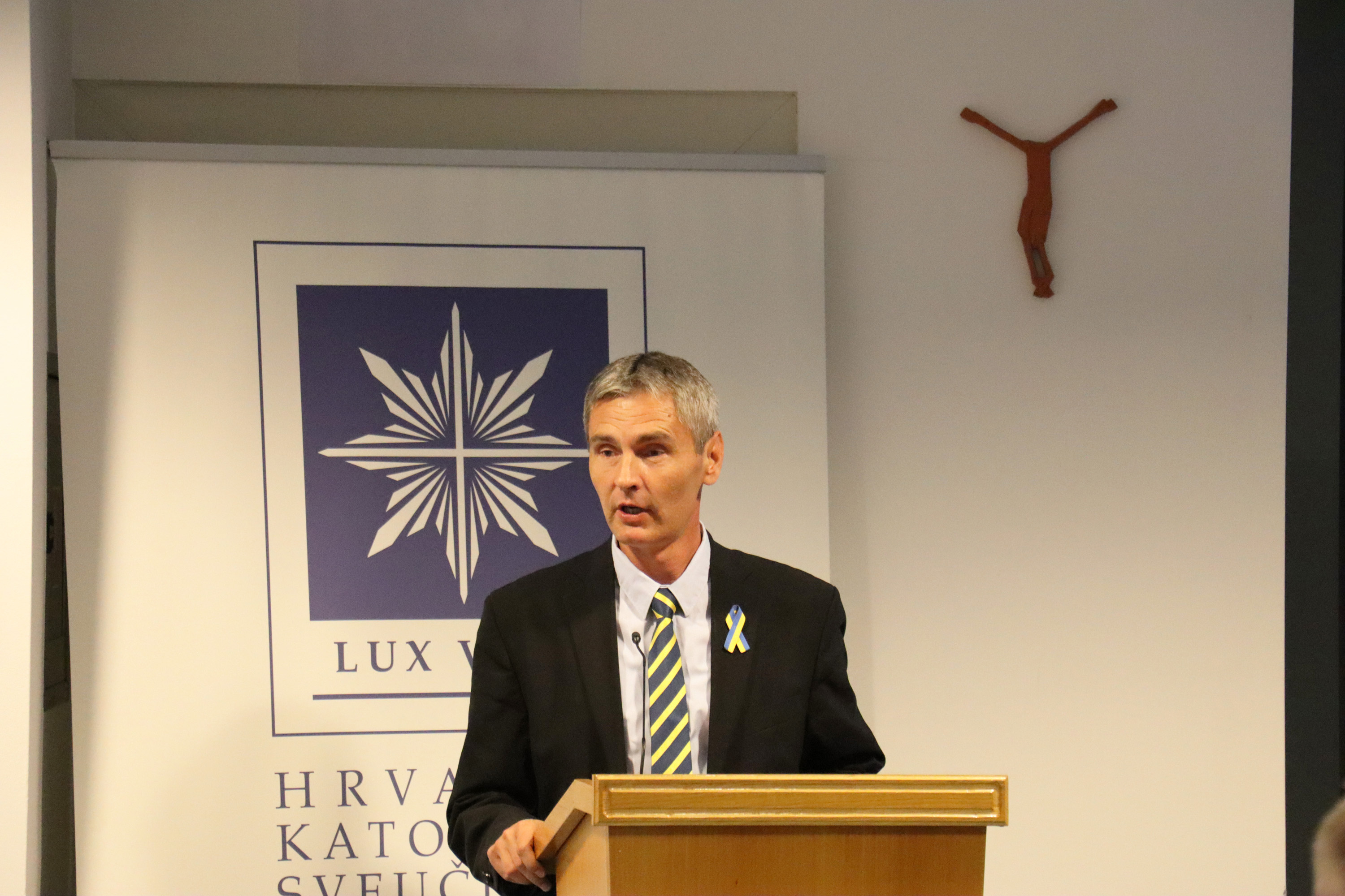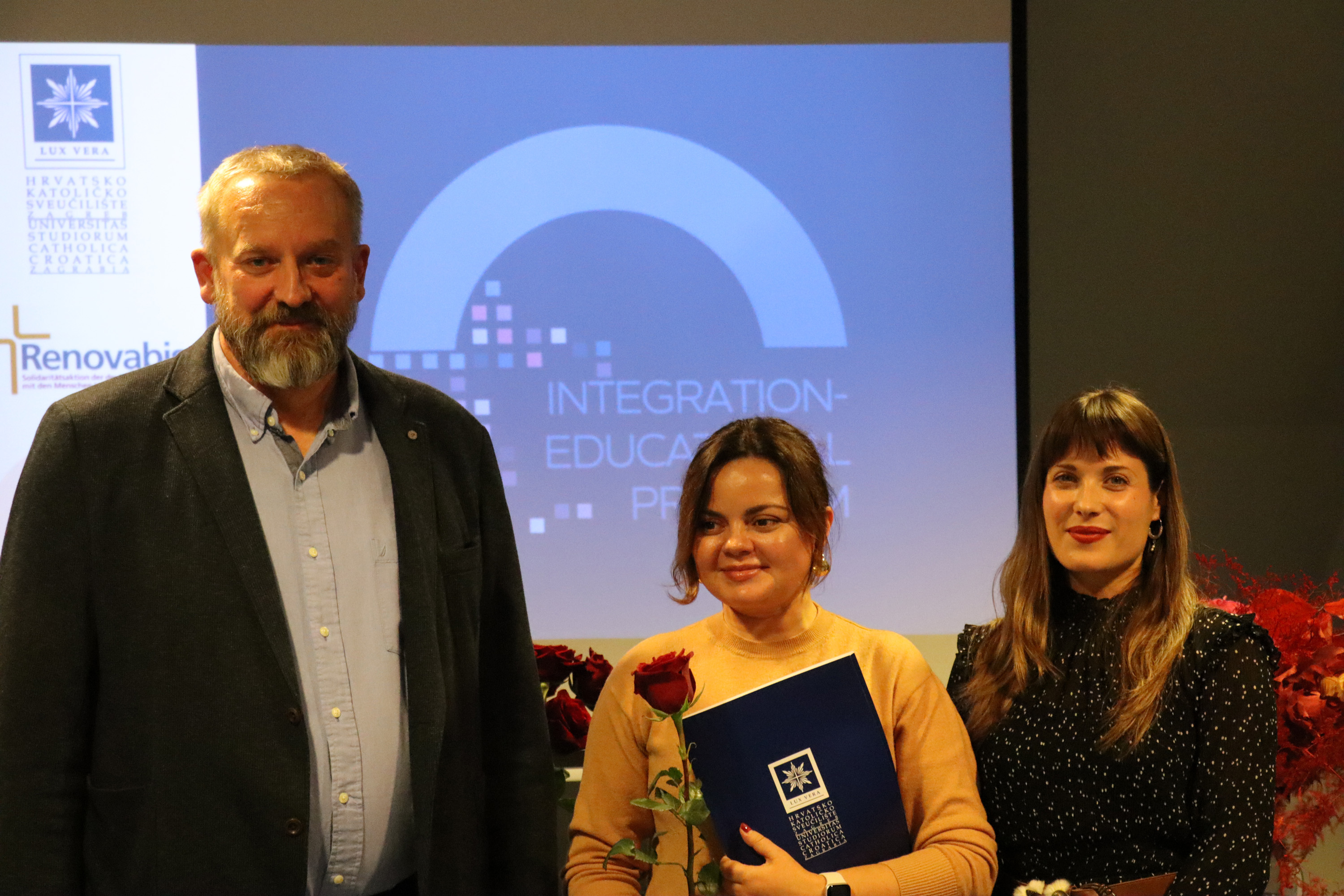 U četvrtak 9. listopada 2025. u dvorani “Blaženi Alojzije kard. Stepinac” na Hrvatskom katoličkom sveučilištu petoj generaciji ukrajinskih polaznika dodijeljene su potvrde o uspješnom završetku Integracijsko-edukacijskog programa i svjedodžbe o poznavanju jezika.