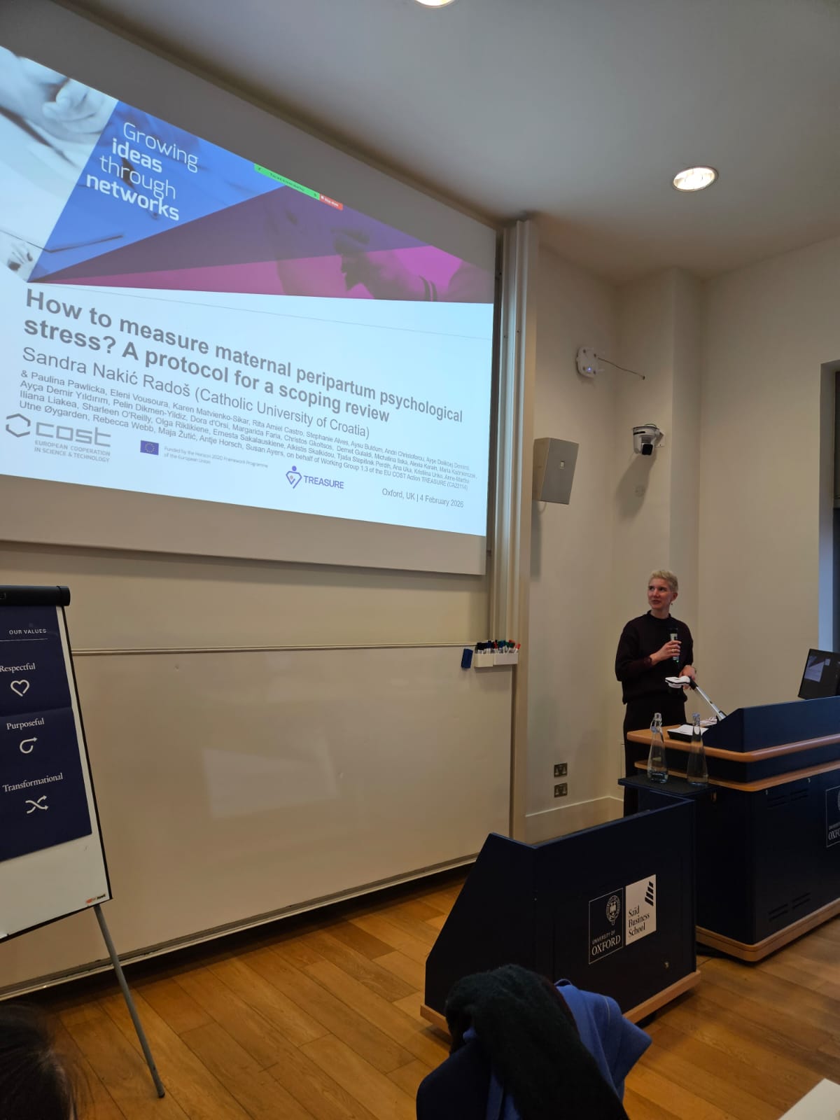 Uz sudjelovanje na sastancima svoje radne skupine, nastavnice su kao članice organizacijskog odbora aktivno pridonijele organizaciji znanstvene konferencije 1st International TREASURE Conference na Sveučilištu Oxford. Pritom je viša asistentica Žutić bila glavna moderatorica cijele konferencije. Konferencija je okupila istraživače i stručnjake iz područja reproduktivnog mentalnog zdravlja, javnog zdravstva i društvenih znanosti, s ciljem razmjene znanstvenih spoznaja i poticanja interdisciplinarne suradnje.