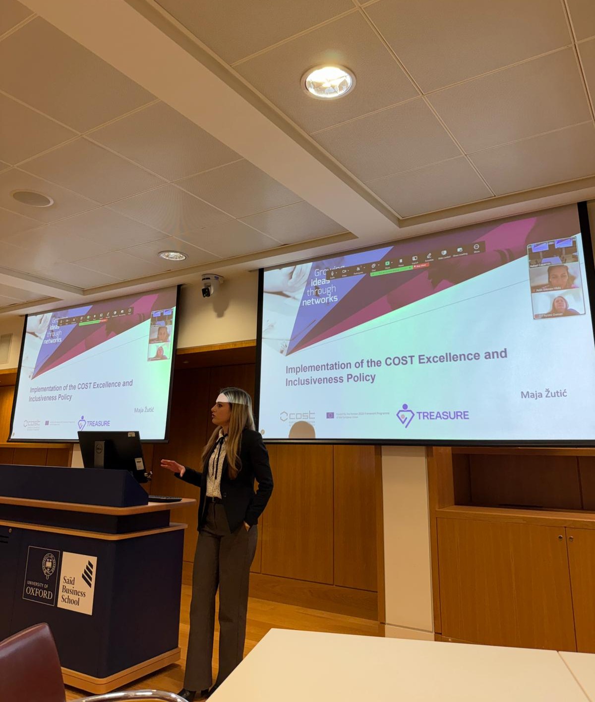 Viša asistentica Maja Žutić sudjelovala je na sastanku glavne skupine Akcije („Core Group“), užeg operativnog tijela zaduženog za stratešku koordinaciju, praćenje provedbe radnog plana te donošenje ključnih organizacijskih i financijskih odluka. Tom je prilikom, dr. sc. Žutić kao koordinatorica za mlade istraživače te geografsku i spolnu ravnotežu u projektu koji okuplja više od 620 istraživača iz cijeloga svijeta, održala izlaganje pod nazivom Implementation of the COST Excellence and Inclusiveness Policy.