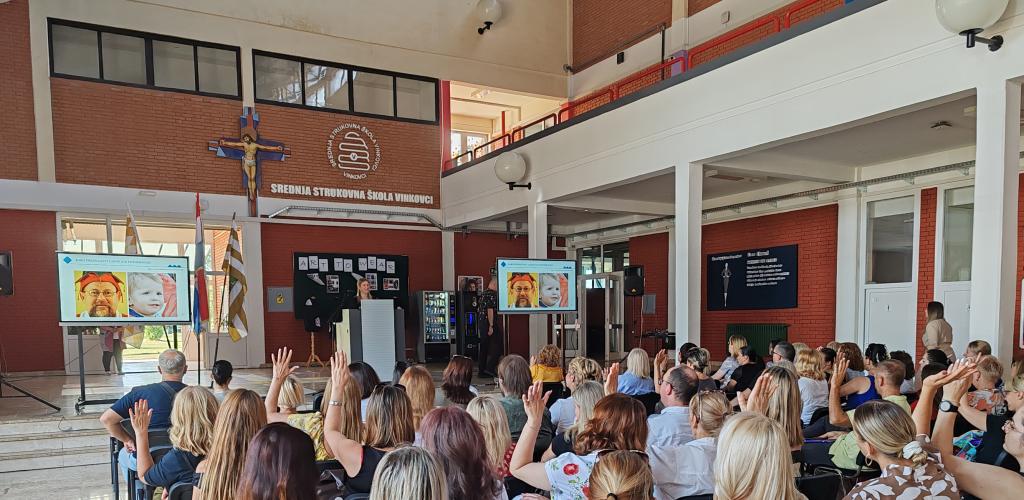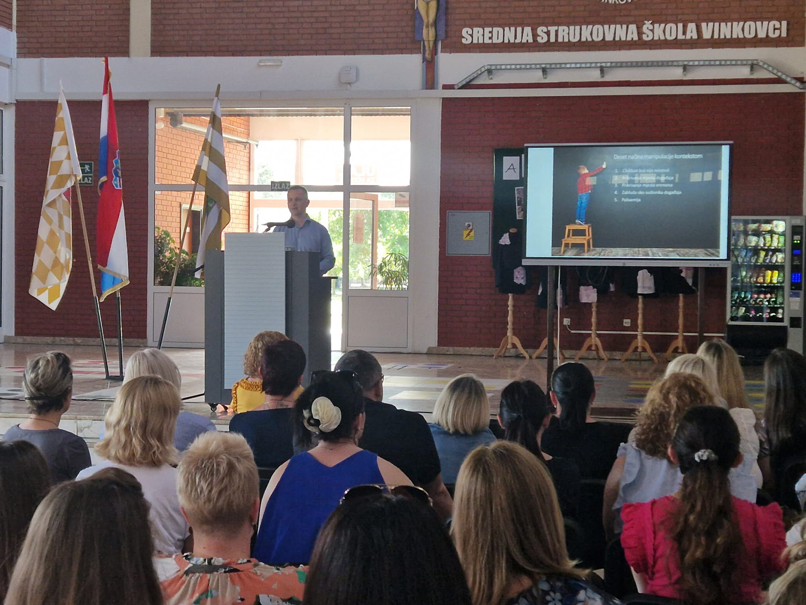 Međužupanijski stručni skupovi održani su u Vinkovcima, Rovišću te putem mreže u Rijeci. Učitelji razredne nastave i profesori hrvatskog jezika u proteklih tjedan dana imali su priliku stjecati nova znanja i vještine o specifičnostima generacije Alfa u učionici te digitalnom svijetu u nastavi hrvatskoga jezika, o važnosti kritičkog vrednovanja naslova, ali i o dezinformacijama u našem medijskom okružju.