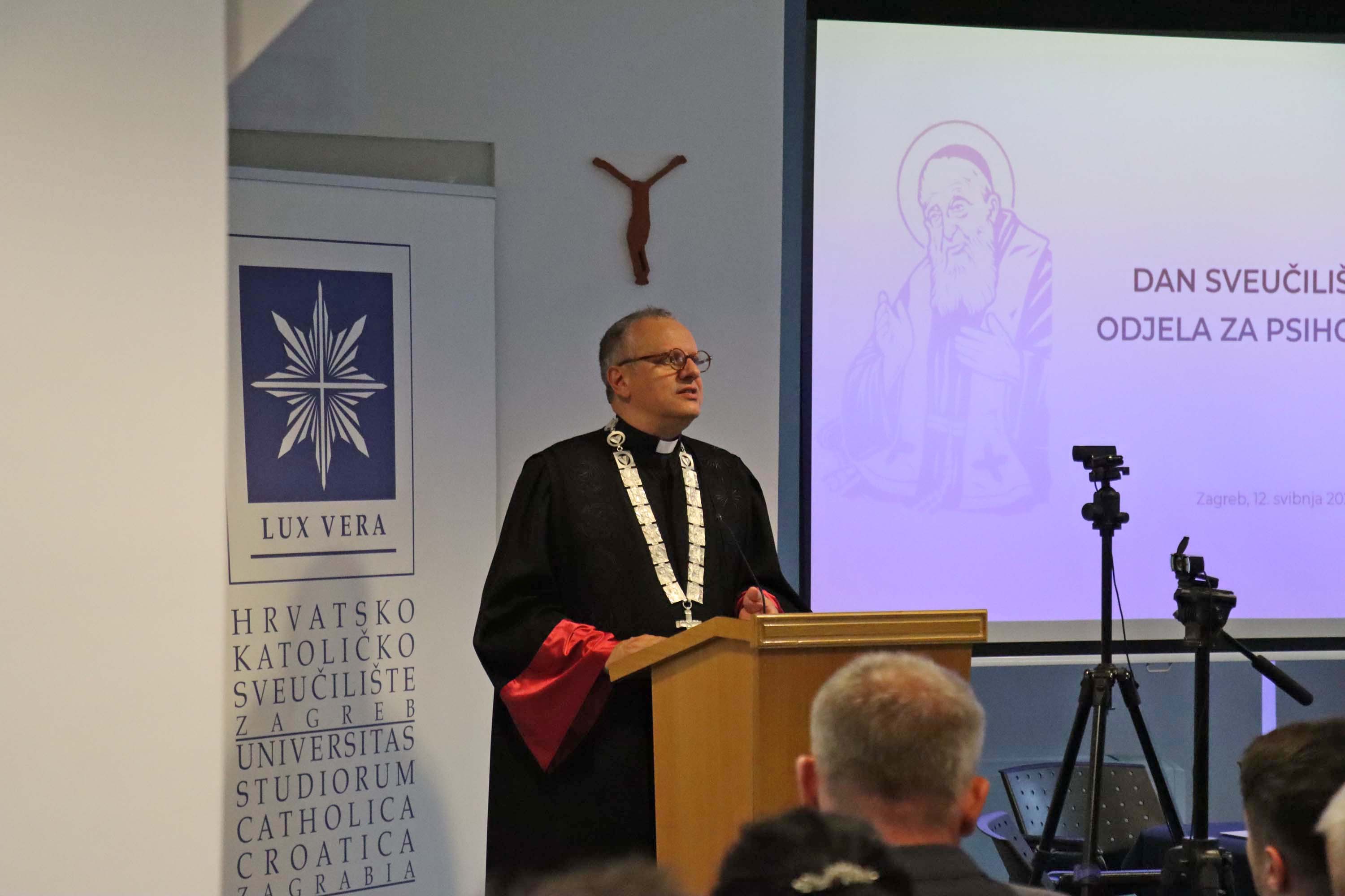 U ponedjeljak 12. svibnja 2025., svečano je obilježen Dan Sveučilišnog odjela za psihologiju. Program je započeo svetim misnim slavljem koje je predvodio sveučilišni kapelan vlč. Branimir Jagodić u koncelebraciji s rektorom Hrvatskog katoličkog sveučilišta prof. dr. sc. Željkom Tanjićem, prorektorom za kvalitetu, identitet i poslanje prof. dr. sc. Antom Crnčevićem i doc. dr. sc. Odilonom Singboom sa Sveučilišne katedre za teologiju.