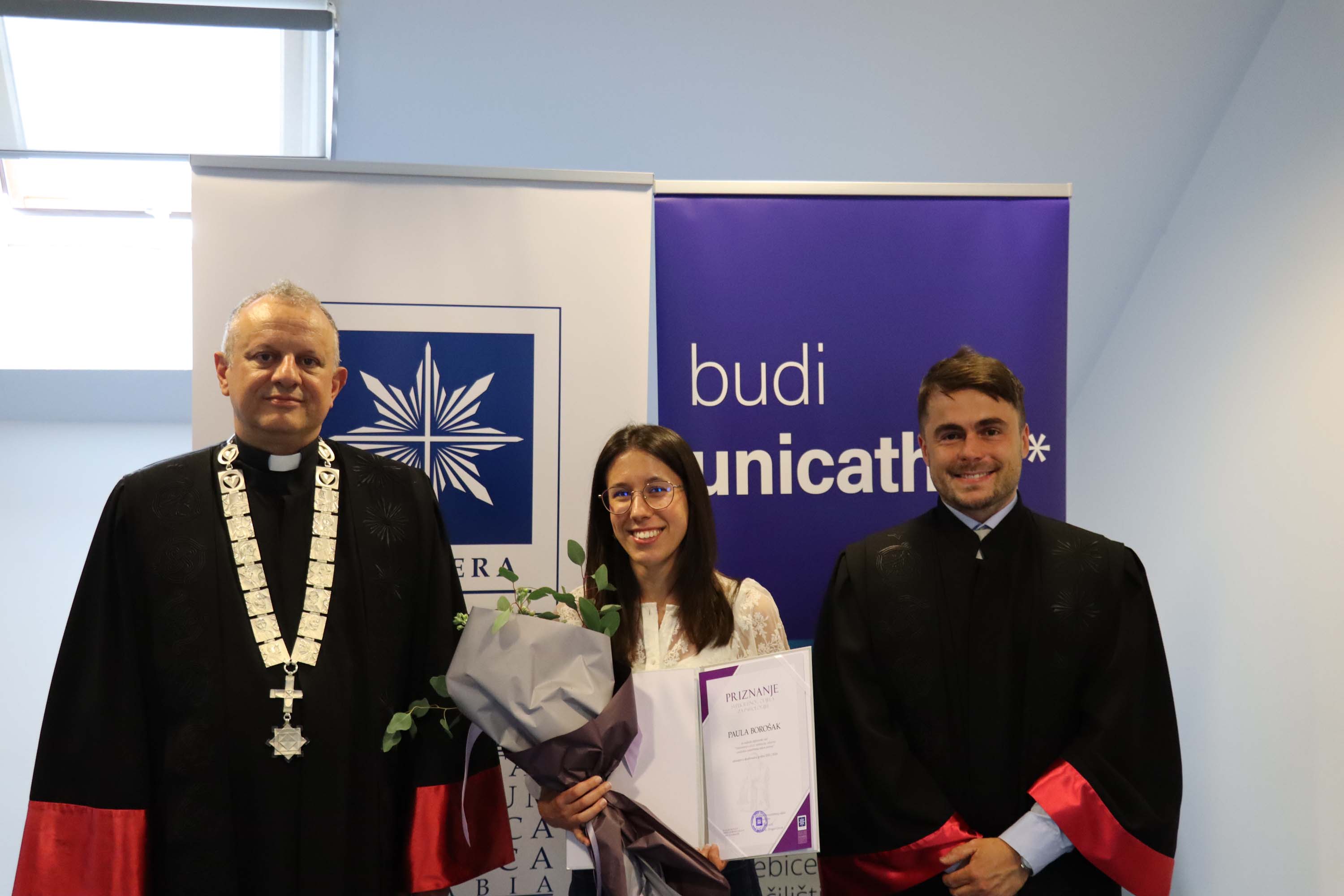 Priznanje za najbolji diplomski rad obranjen u akademskoj godini 2023./2024. dodijeljeno je Pauli Borošak. Kolegica Borošak diplomski rad „Volontiranje u krizi: motivacija, iskustva i posljedice volontiranja nakon potresa“ izradila je pod mentorstvom izv. prof. dr. sc. Ivane Vrselje i komentorstvom doc. dr. sc. Lane Batinić. U radu je obrađena rijetko istraživana tema – krizno volontiranje – s fokusom na potres koji je 2020. godine pogodio Banovinu; za potrebe rada provela je istraživanje koristeći metodu fokus grupa u tri hrvatska grada, regrutirala sudionike, organizirala i moderirala razgovore te provela tematsku analizu podataka.