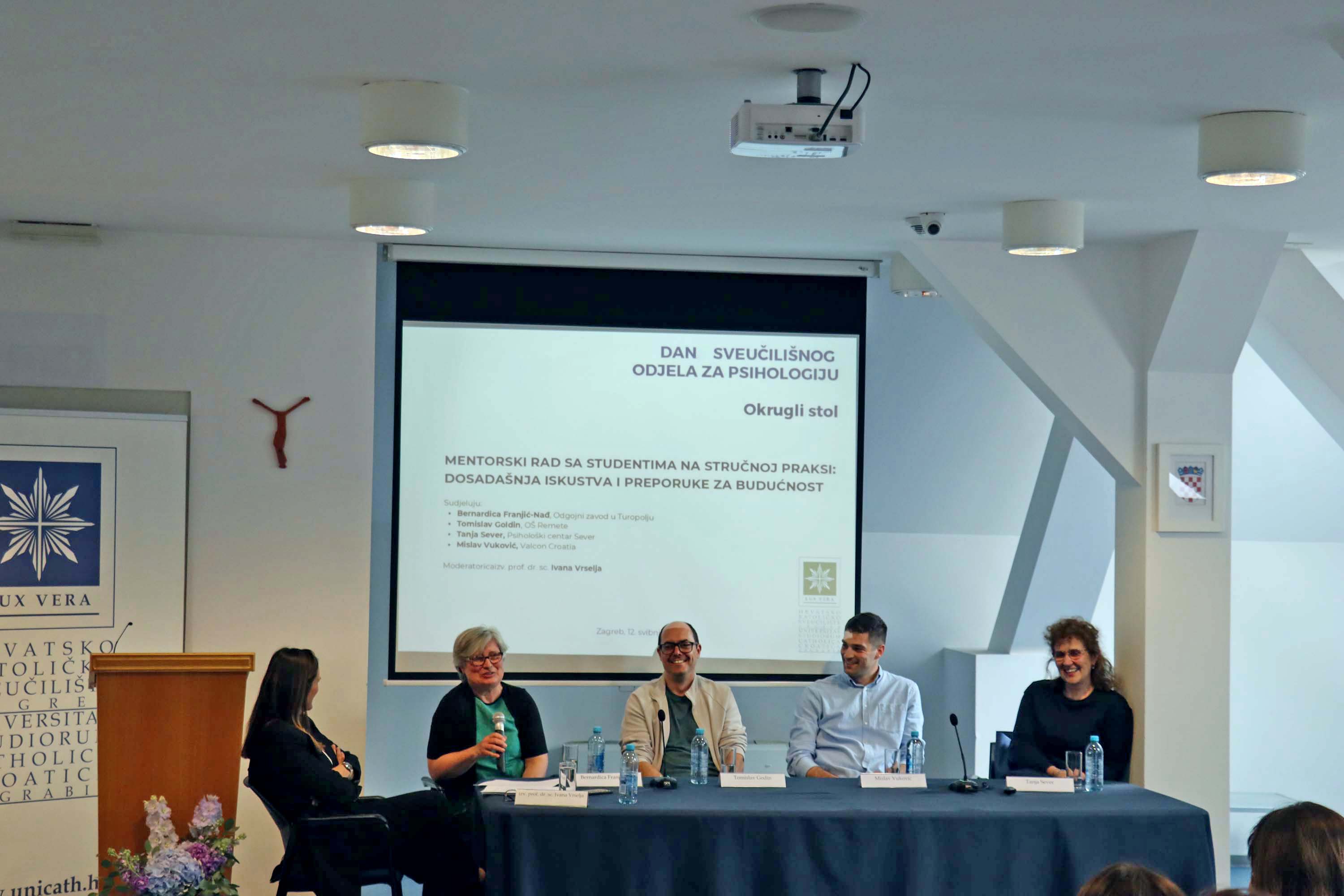 Nakon svečanog akademskog čina održan je okrugli stol „Mentorski rad sa studentima na stručnoj praksi: dosadašnja iskustva i preporuke za budućnost“ u kojem su sudjelovali Bernardica Franjić Nađ iz Odgojnog zavoda u Turopolju; Tomislav Goldi iz OŠ Remete; Tanja Sever iz Psihološkog centra Sever i Mislav Vuković iz tvrtke Valcon Croatia, a okrugli stol moderirala je izv. prof. dr. sc. Ivana Vrselja.
