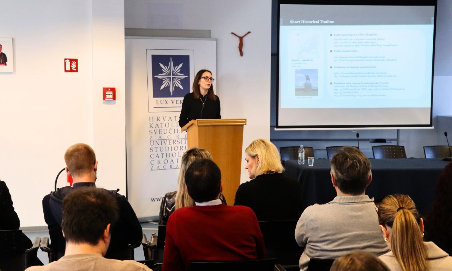 Studentima su predstavljeni pročelnici sveučilišnih odjela i ECTS koordinatori koji će im tijekom boravka biti glavna akademska podrška u vezi s kolegijima, ispitima i studijskim obavezama. U sklopu programa, izlaganje o hrvatskoj povijesti, kulturi i jeziku održala je asistentica na Odjelu za povijest Matea Jurić Matulić, čime su studenti dobili vrijedan uvod u društveni i kulturni kontekst zemlje u kojoj će provesti naredne mjesece. Poseban naglasak stavljen je i na važnost mentalnog zdravlja te procesa prilagodbe na novu sredinu. Predavanje na tu temu održala je dr. sc. Maja Žutić, viša asistentica na Odjelu za psihologiju, koja je studentima predstavila institucionalnu podršku dostupnu tijekom njihovog boravka na našem Sveučilištu.