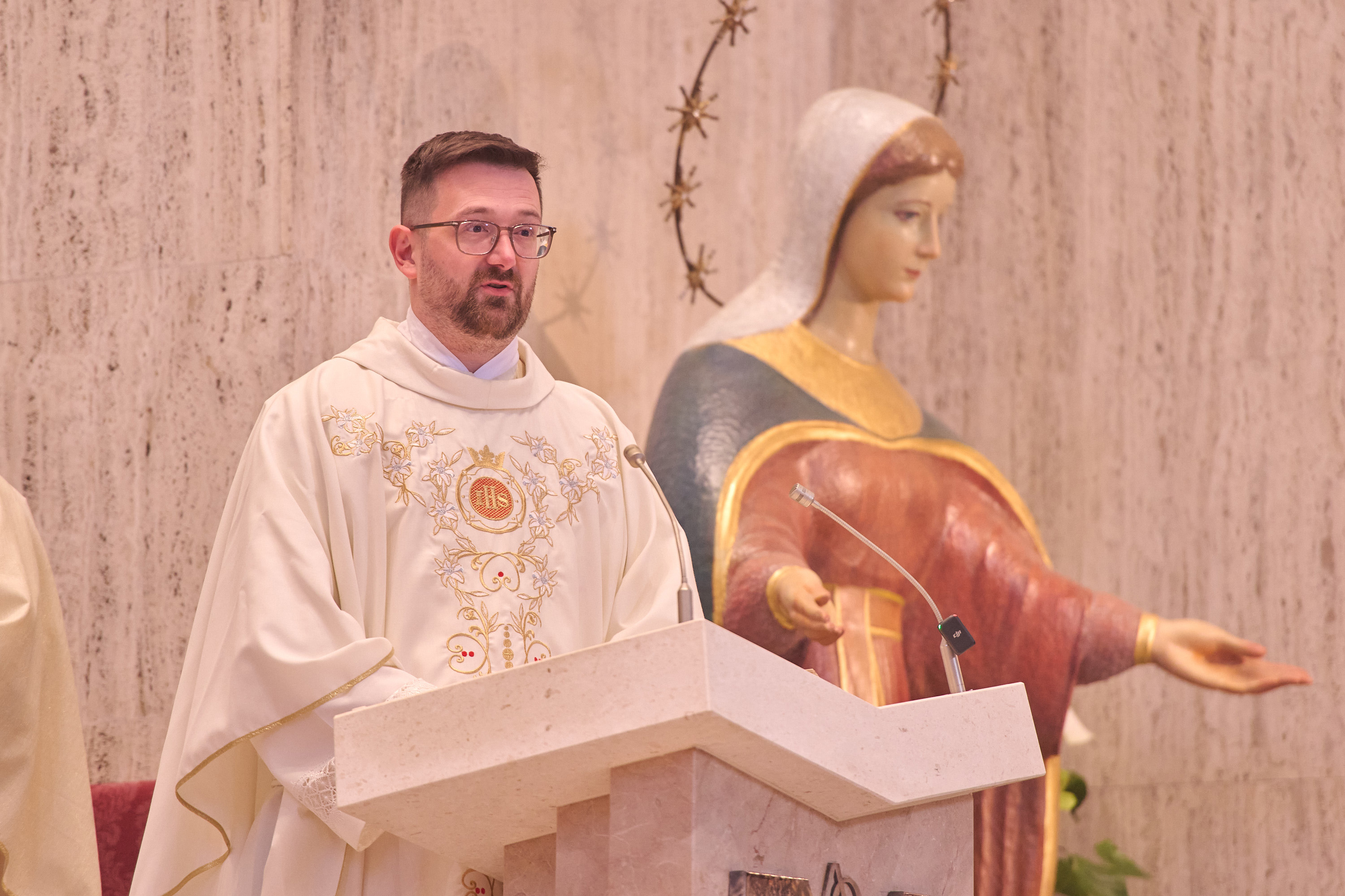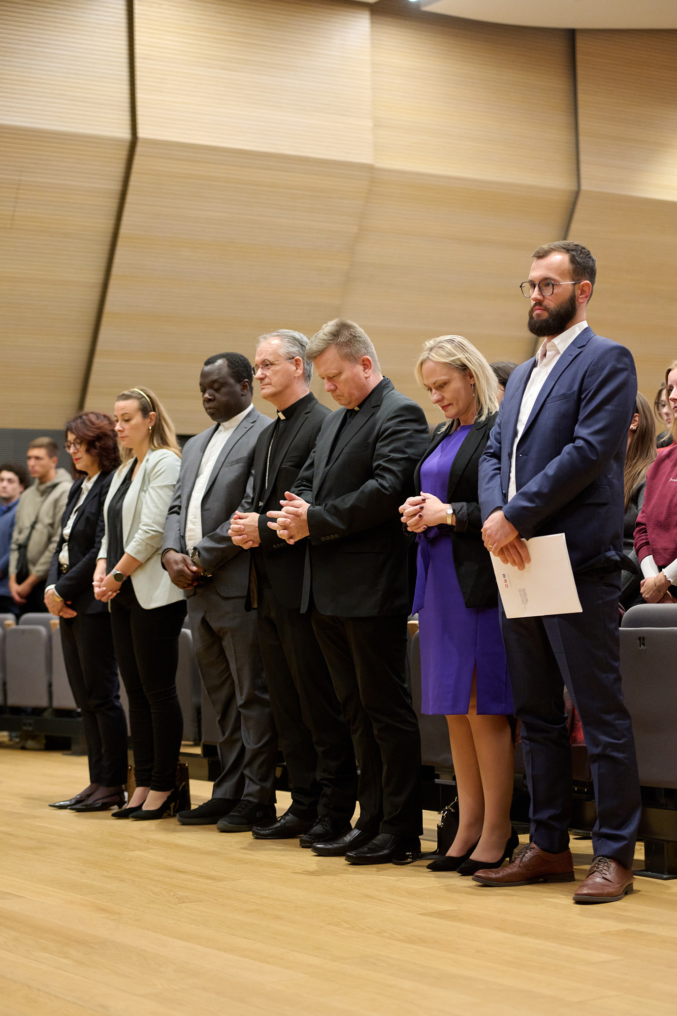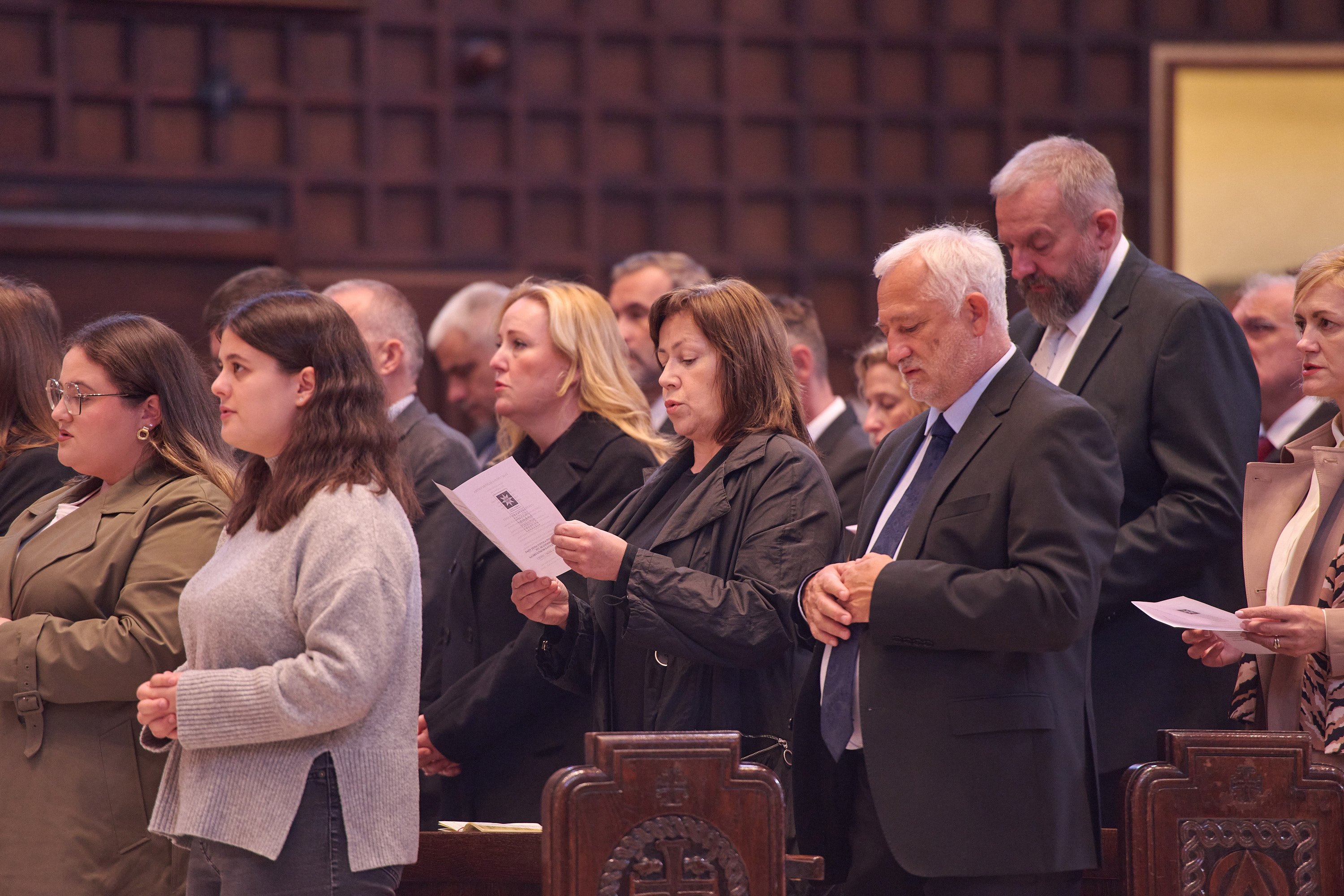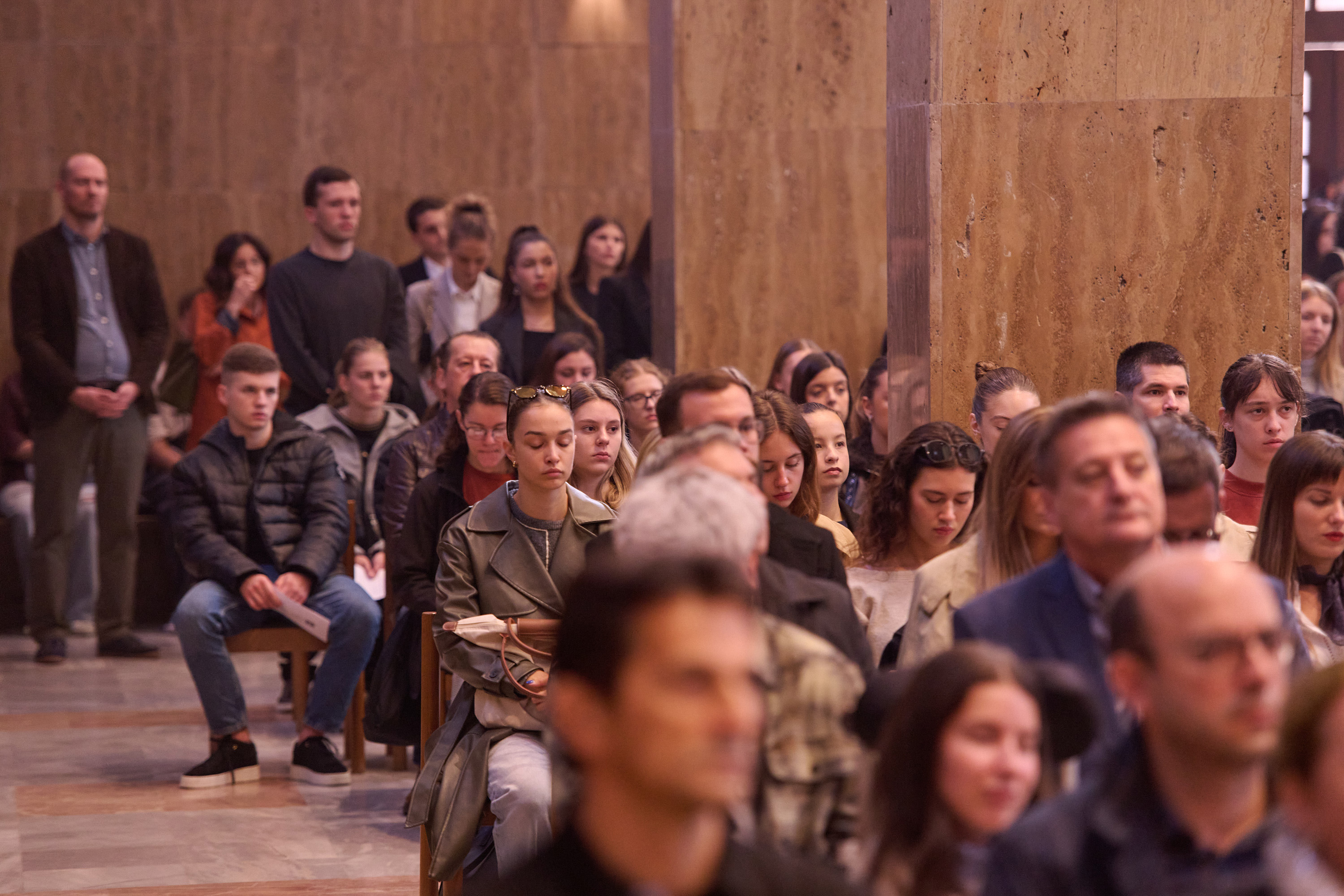 Sveto misno slavlje u bazilici Svetog Antuna Padovanskog na Svetom Duhu predvodio je zagrebački nadbiskup metropolit i Veliki kancelar HKS-a mons. Dražen Kutleša u koncelebraciji s rektorom Hrvatskog katoličkog sveučilišta prof. dr. sc. Željkom Tanjićem, doc. dr. sc. Krunoslavom Novakom, generalnim tajnikom Hrvatske biskupske konferencije, prof. dr. sc. Antom Crnčevićem, prorektorom za kvalitetu, identitet i poslanje Sveučilišta, mr. sc. Domagojem Maoševićem, moderatorom Nadbiskupskog duhovnog stola i v.d. dužnosti ekonoma biskupije, fra Ivanom Marijom Lotarom, župnikom župe sv. Antuna, vlč. Filipom Šešekom, povjerenikom zagrebačke nadbiskupije za mlade, pastoral športaša i koordinatorom dušobrižništva za studente u Zagrebu, vlč. Domagojem Topićem, nadbiskupskim tajnikom, prof. dr. sc. Jerkom Valkovićem sa Sveučilišnog odjela za komunikologiju te izv. prof. dr. sc. Richardom Pavlićem i doc. dr. sc. Odilonom Singboom sa Sveučilišne katedre za teologiju.