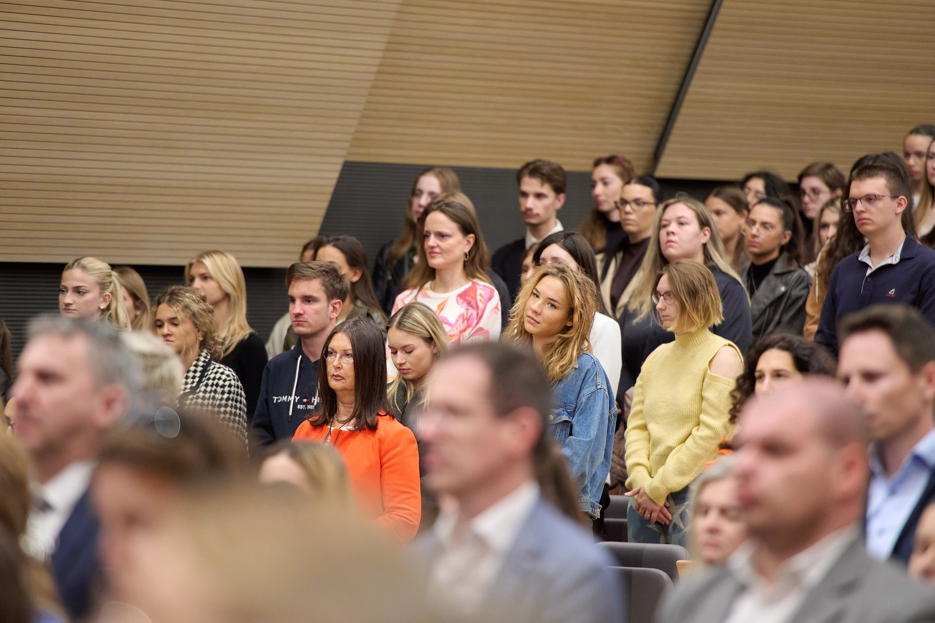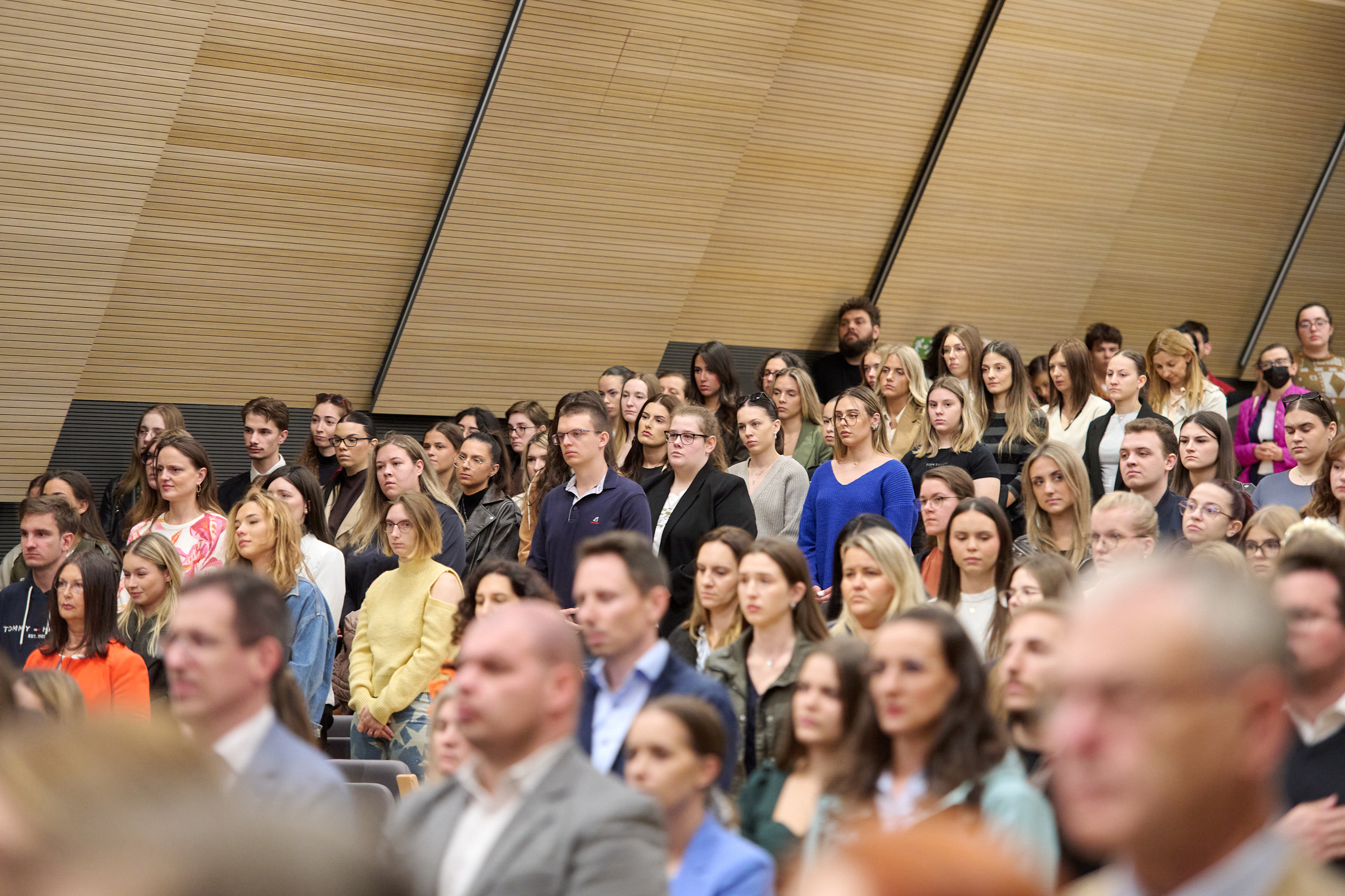 Prorektor za nastavu prof. dr. sc. Roko Mišetić pozdravio je okupljene nastavnike i studente te im je zaželio dobrodošlicu, istaknuvši važnost međusobne suradnje studenata, voditelja godišta, profesora, pročelnika Sveučilišnih odjela i sa starijim kolegama.