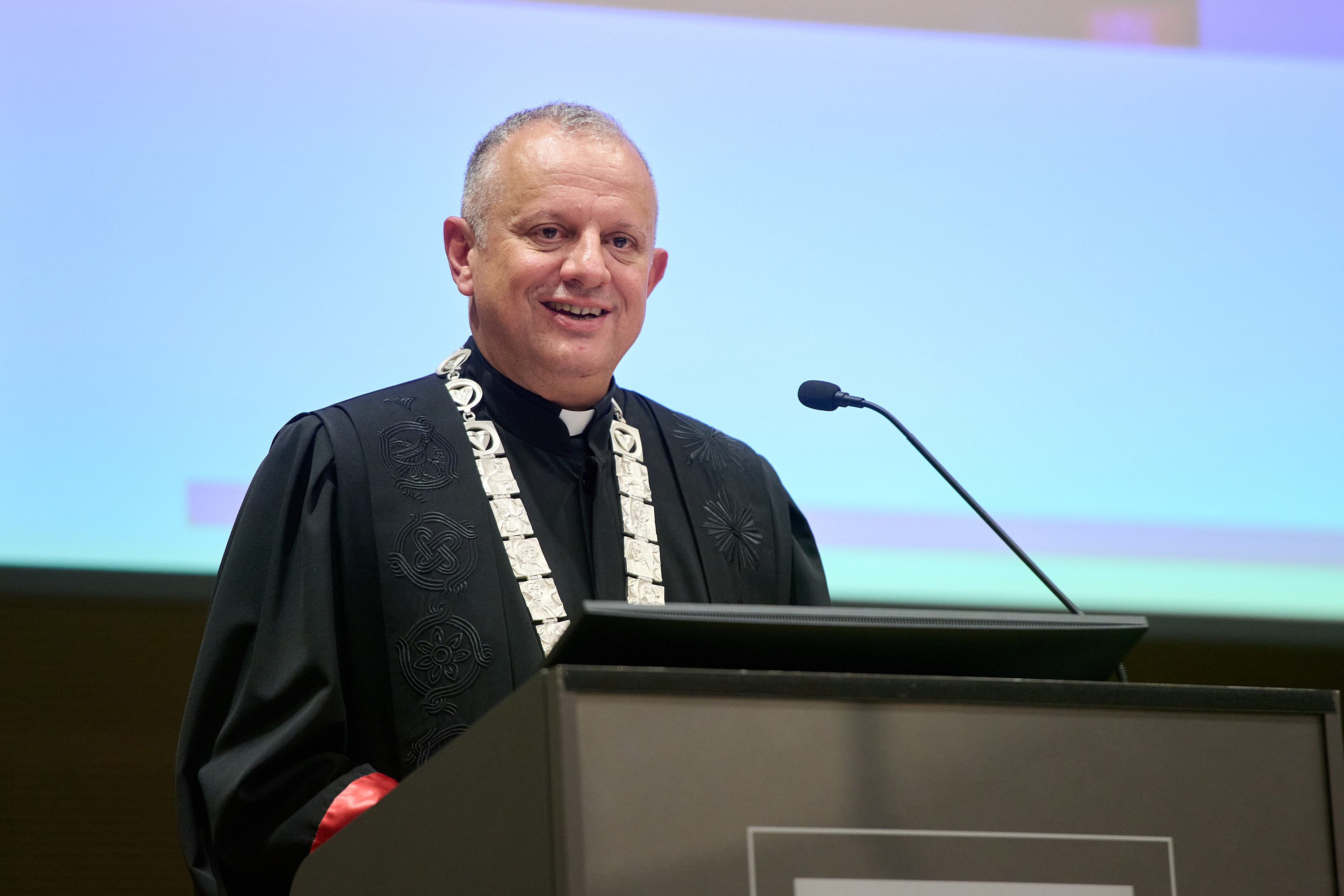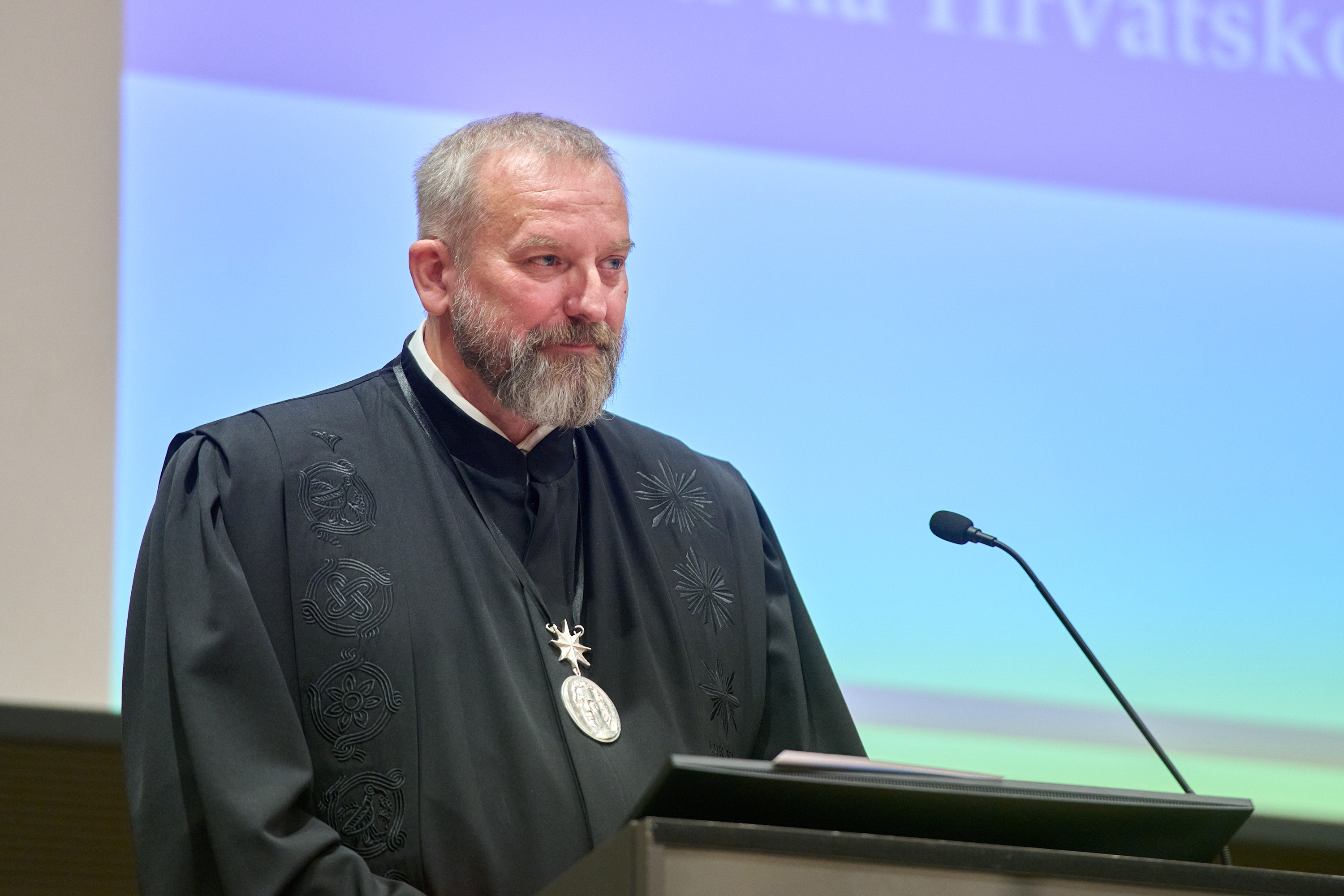 U ime akademske zajednice govorio je prof. dr. sc. Željko Tanjić, rektor Hrvatskog katoličkog sveučilišta, koji je istaknuo: "Troplet triju dimenzija ili triju momenata jednog identiteta Hrvatskoga katoličkog sveučilišta – akademskog, hrvatskog i katoličkog – bjelodano pokazuje da katoličko sveučilište, na temelju svojega kršćanskog nadahnuća, samim svojim postojanjem i djelovanjem upozorava na prisutnost duhovnog momenta u činu istraživanja, spoznavanja i stjecanja znanja; sve je to duhovan rad. Ono naime uzmaže otkrivati otiske prstiju božanskog suradnika u svakidašnjem sveučilišnom poslu: oni su evidentni u dobru znanja koje se postiže i u dobru koje se čini; oni se pokazuju u pitanjima koja se postavljaju i u problemima koji se javljaju i rješavaju te u poteškoćama koje se podnose; oni se otkrivaju u traganju za istinom, dobrotom, ljepotom i smislom same stvarnosti te čovjeka i njegova djelovanja u krilu te iste stvarnosti... I hvala vam svima, ovdje okupljenima, na potpori i povjerenju, posebno "brucošima" naših novih studija prava, primaljstva i računarstva. Budite mladi, odvažni i odgovorni - za nas niste broj, nego osobe s imenom i prezimenom. Vaš studijski put neće biti lagan, ali će biti lijep. Zajedno ulazimo u nova prijateljstva i nove nade u ovoj Godini nade", zaključio je rektor. Rektor Tanjić predstavio je dekane novoustrojenih fakulteta našeg Sveučilišta: prof. dr. sc. Zlatana Cara, dekana Tehničkog fakulteta, izv. prof. dr. sc. Kristiana Turkalja, dekana Pravnog fakulteta i doc. dr. sc. Ivicu Matića, v.d. dekana Fakulteta zdravstvenih studija.