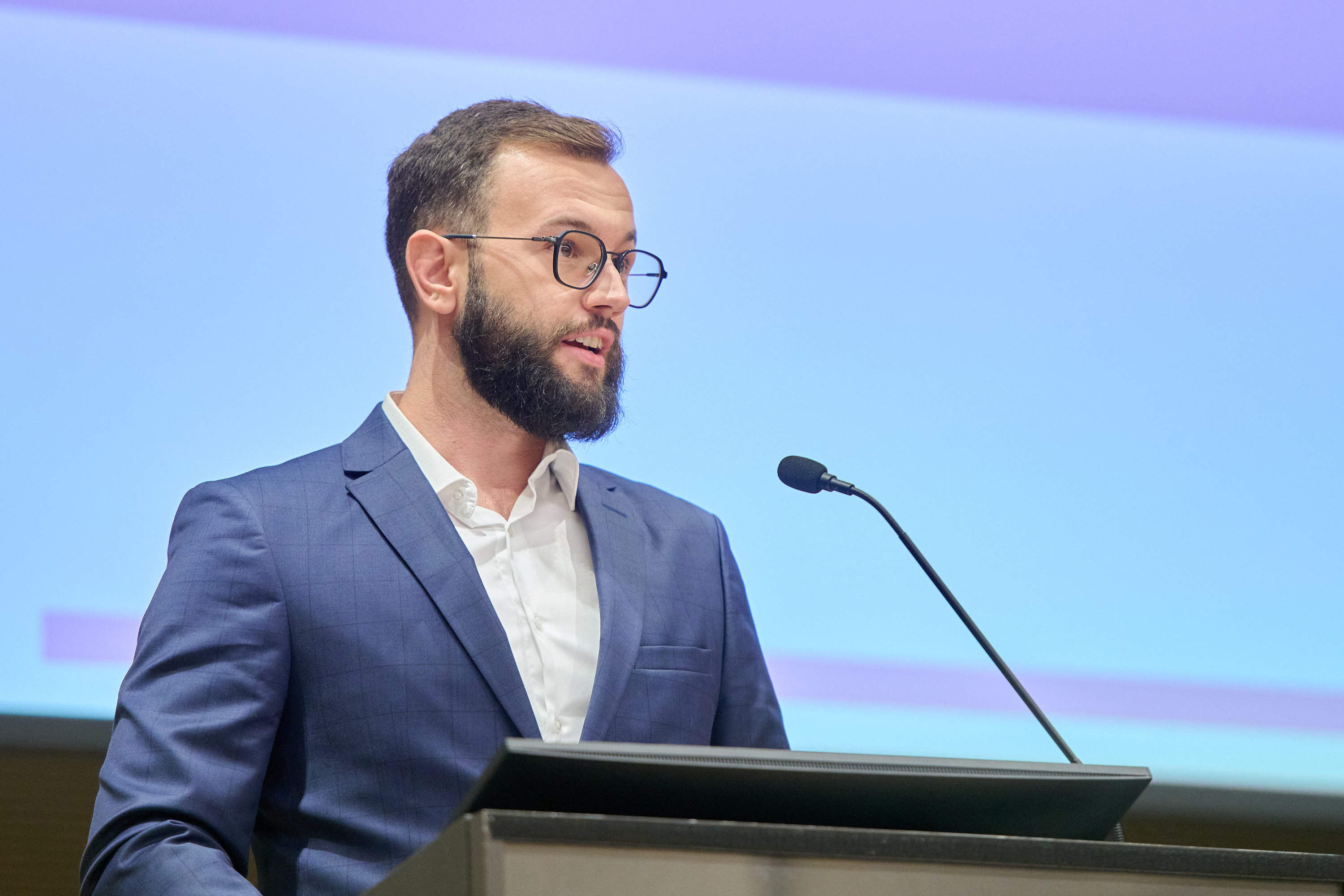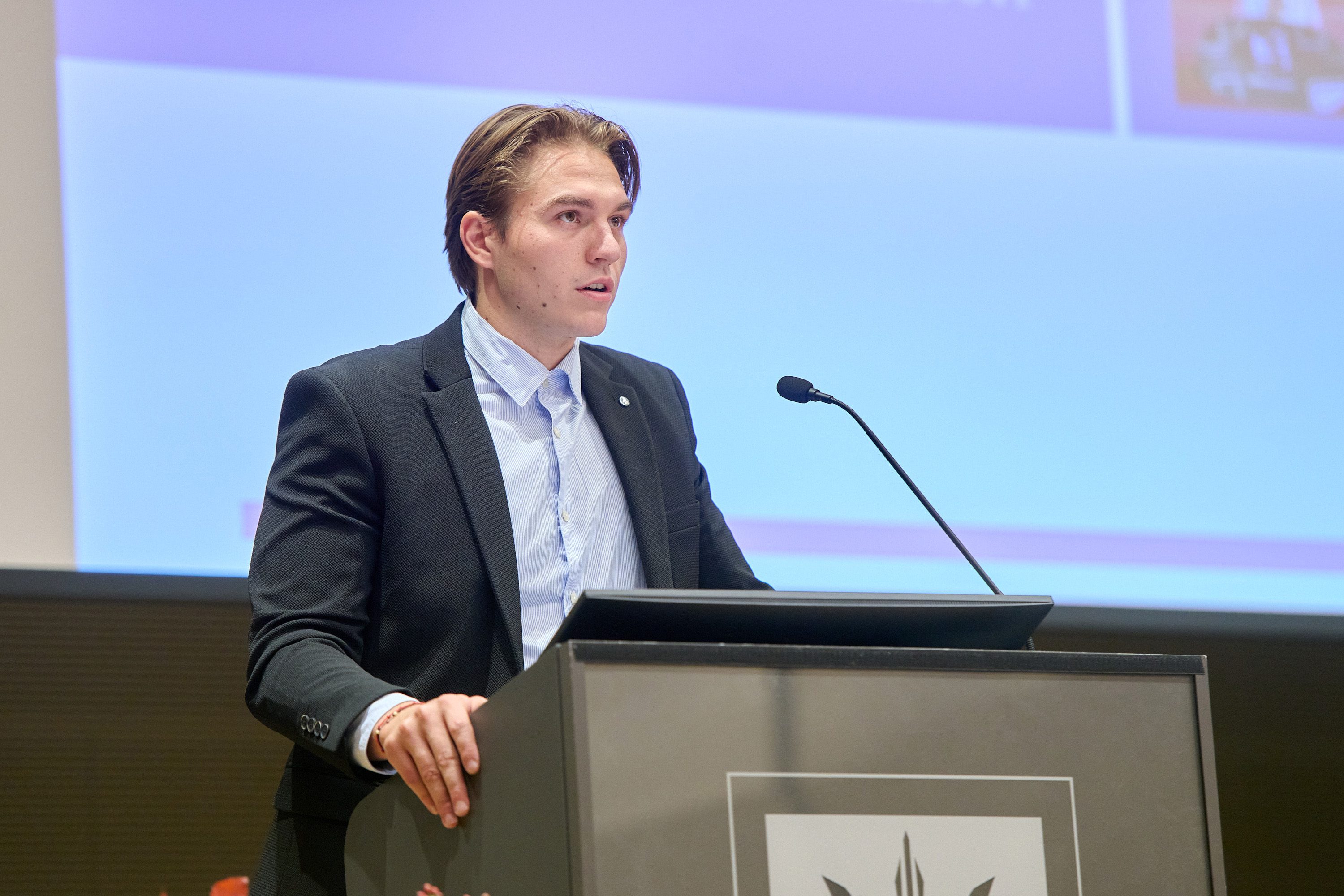 U ime Studentskog zbora studente je pozdravio v.d. predsjednika Studentskog zbora Pero Josip Maslać. Uz riječi dobrodošlice, ohrabrio je nove studente iz perspektive studenta pred krajem studija: "Nemojte se bojati biti početnici. Svi mi smo to bili. I svaki stručnjak je jednom sjedio na vašem mjestu, na početku svoga puta; Nije slabost tražiti pomoć. Dapače, to je znak da vam je stalo i da želite rasti; Vrijednost studiranja nije samo u diplomama. Ona je u ljudima koje ćete upoznati, izazovima koje ćete savladati i iskustvima koja će vas oblikovati", zaključio je Maslać.