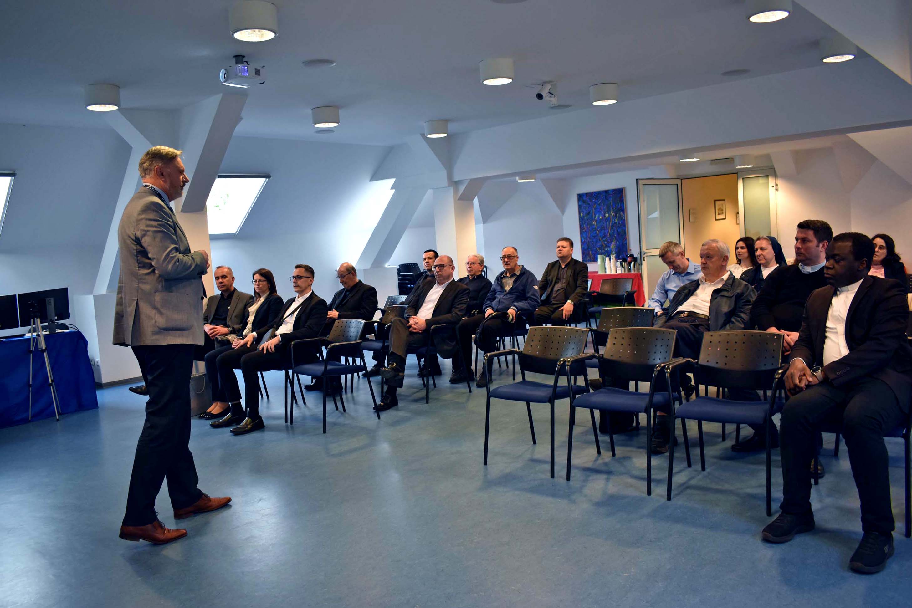 U petak 9. svibnja 2025. u sklopu Studijskog dana službenika crkvenih sudova prigodom 25. obljetnice uspostave Međubiskupijskih sudova u Zagrebu tridesetak službenika posjetilo je Hrvatsko katoličko sveučilište.