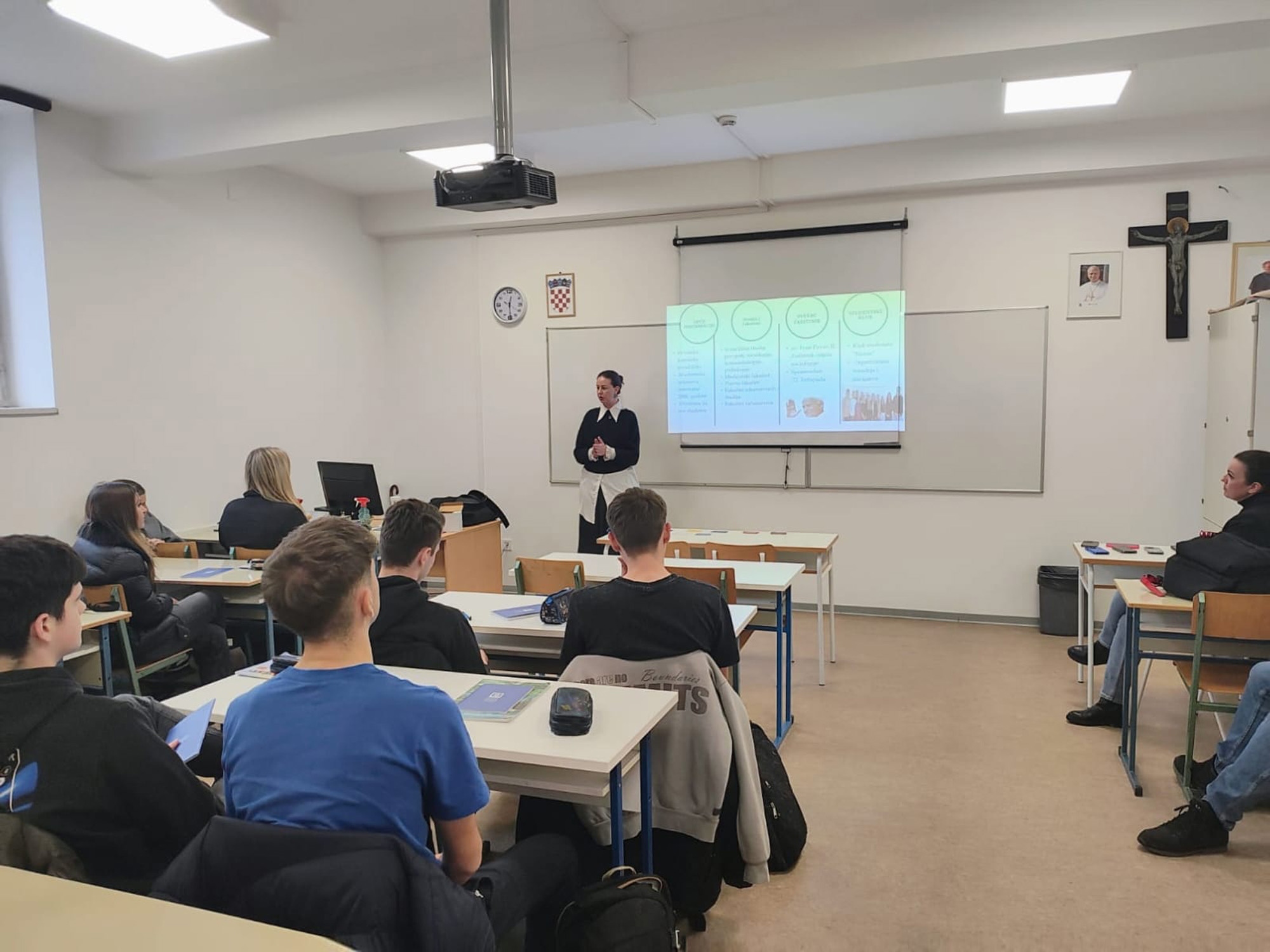 Tom su prilikom pročelnica izv. prof. dr. sc. Ivana Brstilo Lovrić te studenti prve godine diplomskog studija sociologije Dora Reštigorac, Mona Cigrovski i Ante Glasnović učenicima približili studij sociologije i mogućnosti koje nudi Hrvatsko katoličko sveučilište.