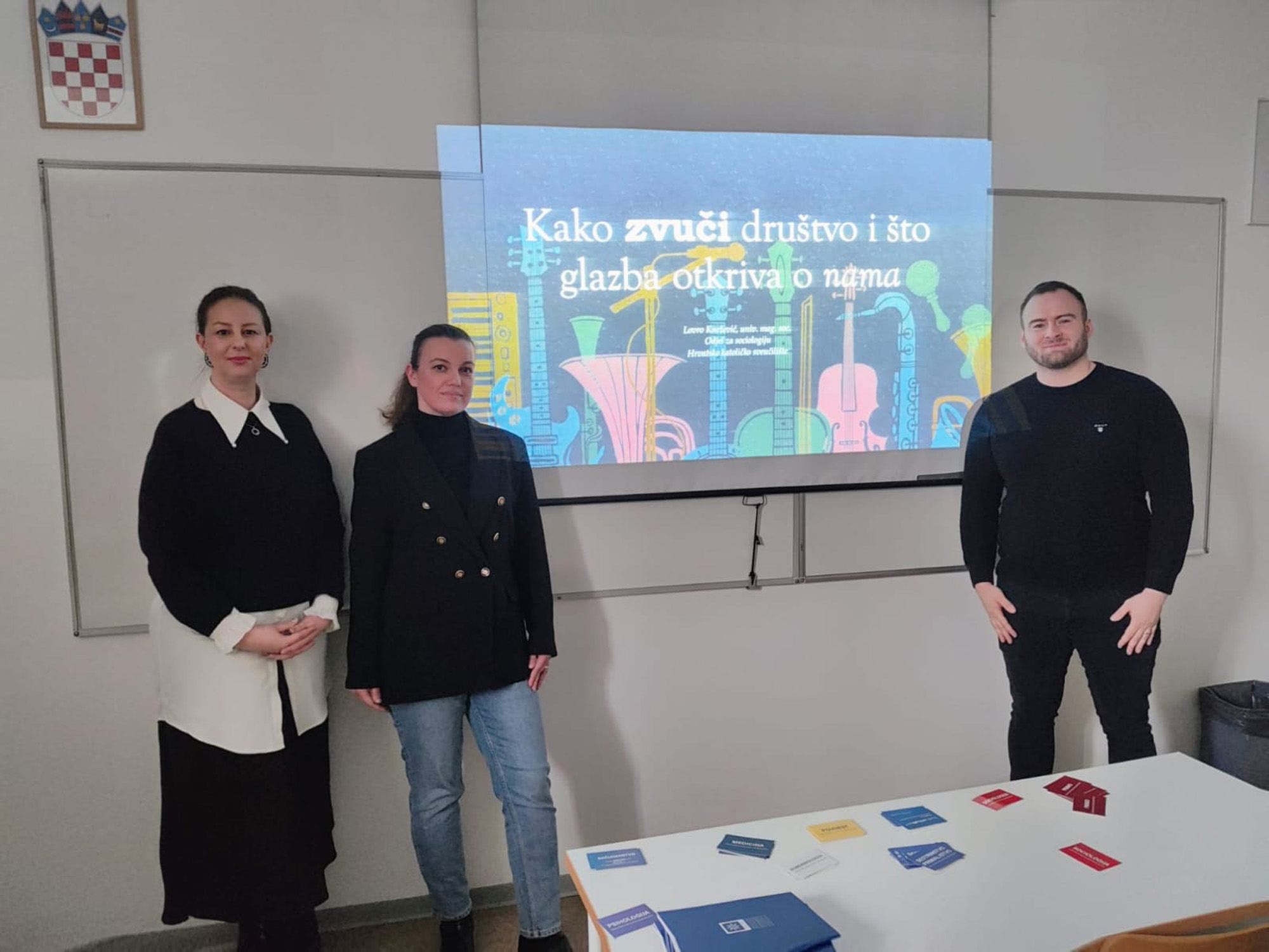 Središnji dio susreta bilo je tematsko izlaganje asistenta Lovre Kneževića o sociologiji glazbe. Kao neizostavan dio svakodnevice mladih, glazba predstavlja njima blizak, ali i sociološki relevantan fenomen koji pomaže u razumijevanju suvremenog društva. Kroz analizu aktualne Billboardove top-ljestvice u Hrvatskoj učenicima su izložene osnovne društvene funkcije glazbe te uloge različitih aktera, od autora do publike, u oblikovanju glazbenih i društvenih trendova.