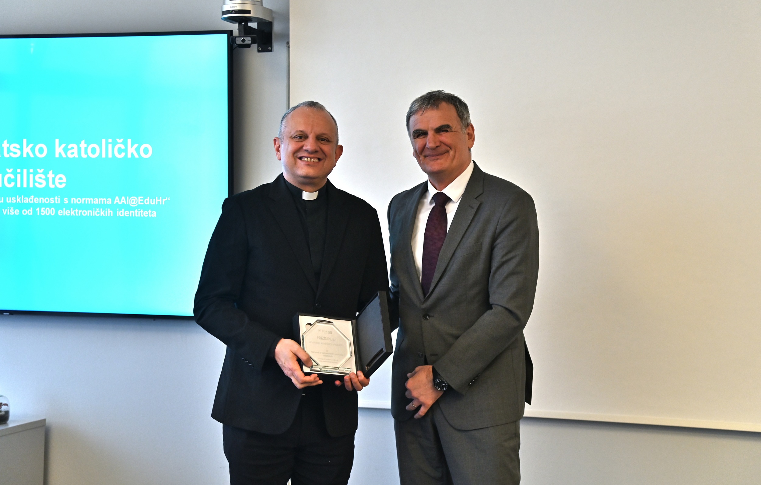 Priznanje je u ime Hrvatskog katoličkog sveučilišta primio rektor prof. dr. sc. Željko Tanjić. Ovo priznanje ujedno je i pohvala našoj Sveučilišnoj ustrojstvenoj jedinici za informatiku koja svojim stručnim i predanim radom kontinuirano osigurava visoku razinu sigurnosti, pouzdanosti i usklađenosti sustava elektroničkih identiteta s propisanim standardima. Njezin doprinos razvoju i unaprjeđenju digitalne infrastrukture Sveučilišta od iznimne je važnosti za kvalitetno funkcioniranje nastavnih, znanstvenih i administrativnih procesa.