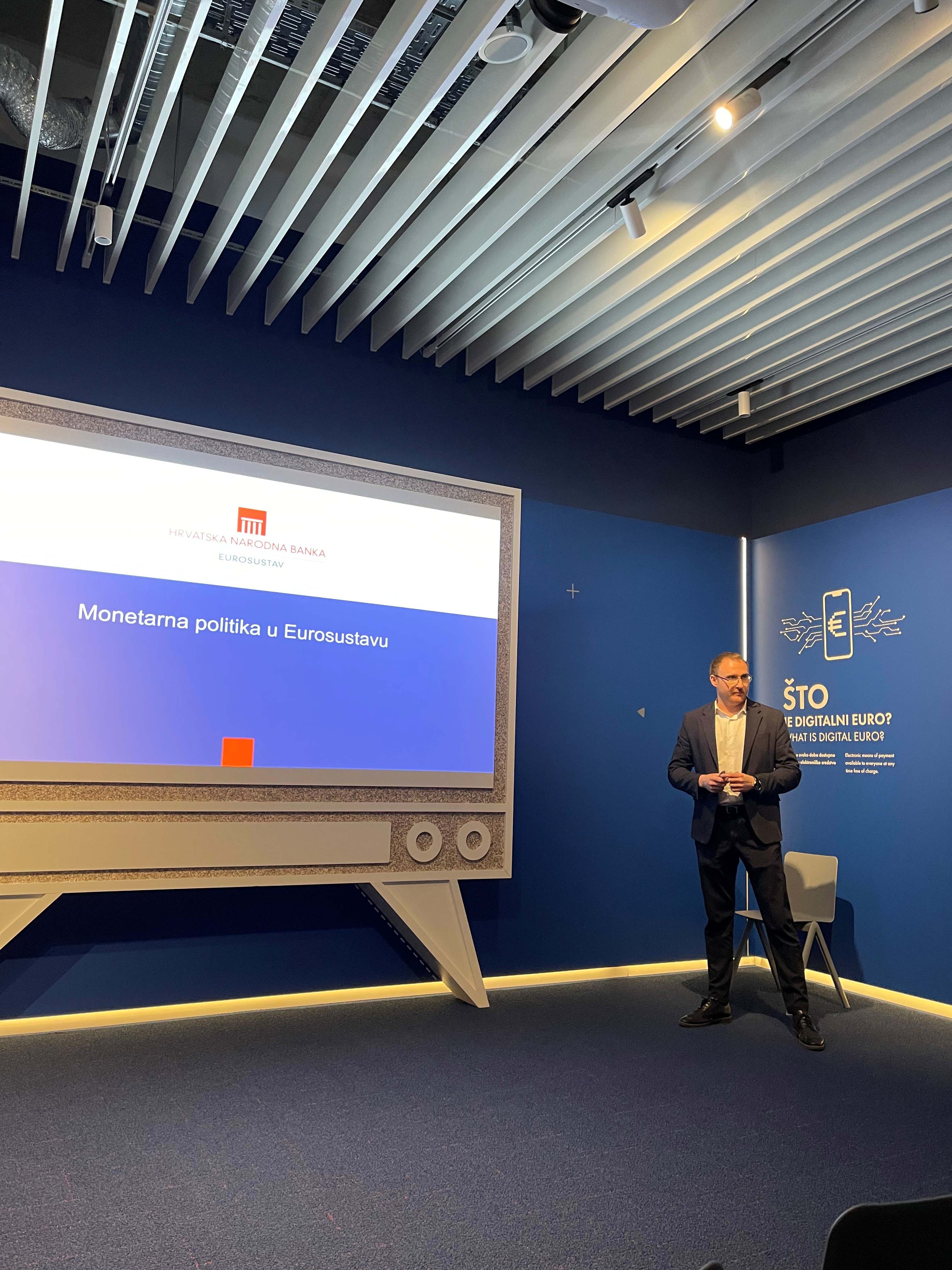Predavanje je održano u sklopu Monterre – Muzej novca Hrvatske narodne banke, suvremeno opremljenog prostora koji putem multimedijalnih, edukativnih i interaktivnih sadržaja približava javnosti teme novca, inflacije, stabilnosti cijena te funkcije i odgovornosti središnje banke. Nakon predavanja, studenti su imali priliku interaktivno razgledati stalni postav muzeja koji na inovativan način prikazuje povijest novca i razvoj monetarnog sustava u Hrvatskoj. Kroz različite digitalne simulacije, multimedijalne prikaze i interaktivne instalacije, studenti su imali priliku na jedinstven i poticajan način saznati više o povijesti novca, njegovoj ulozi u svakodnevnom životu, osobnim financijama, monetarnoj politici i zadaćama središnje banke.