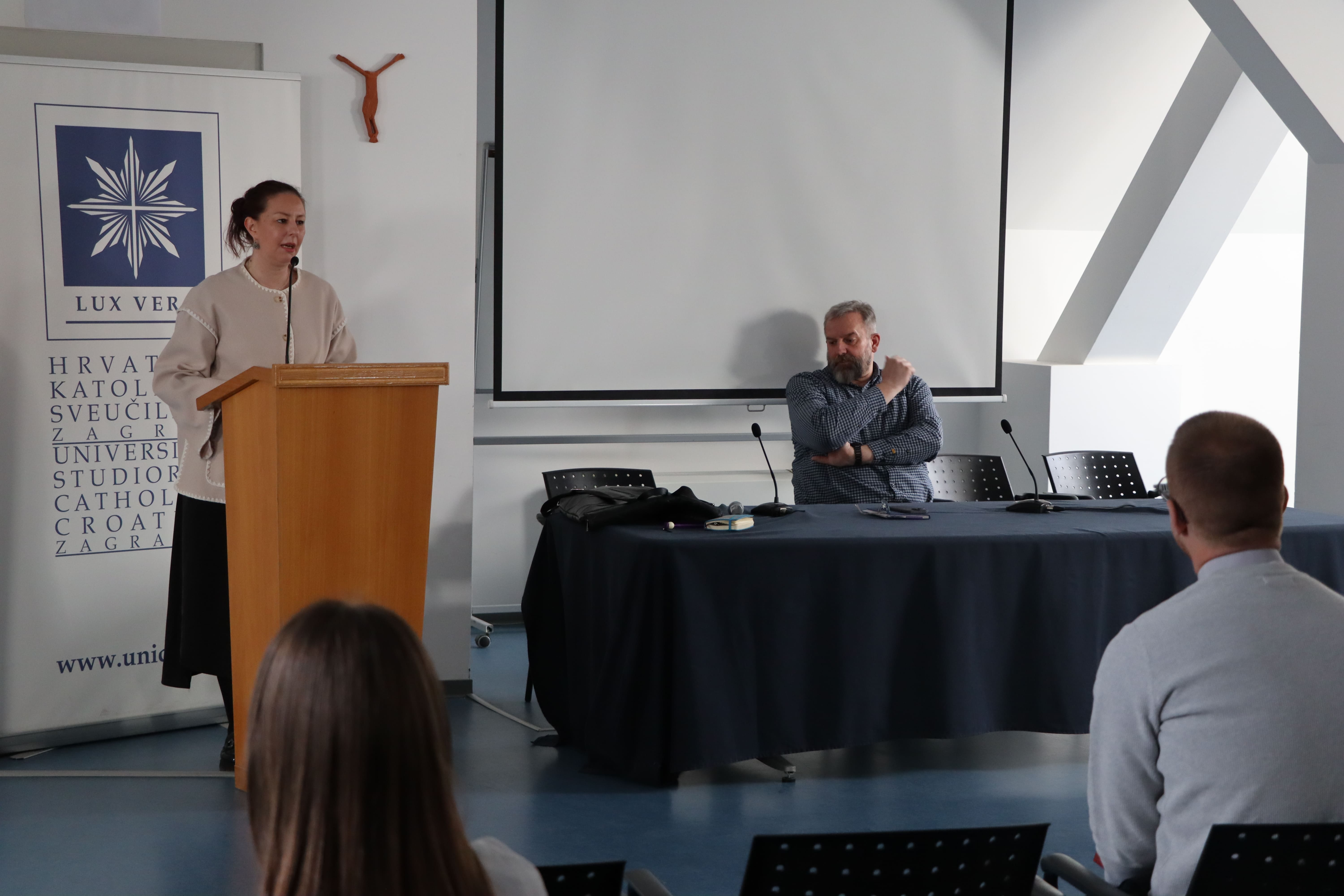 Prorektor za nastavu prof. dr. sc. Roko Mišetić i pročelnica Sveučilišnog odjela za sociologiju izv. prof. dr. sc. Ivana Brstilo Lovrić održali su sastanak sa studentima sociologije HKS-a u četvrtak, 12. ožujka u dvorani bl. Alojzija kardinala Stepinca.