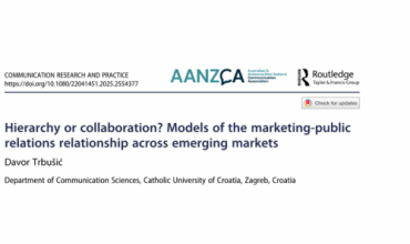 Doc. dr. sc. Davor Trbušić s Odjela za komunikologiju objavio je znanstveni rad u uglednom međunarodnom časopisu Communication Research and Practice (izdavač Routledge).Rad pod naslovom Hierarchy or…
