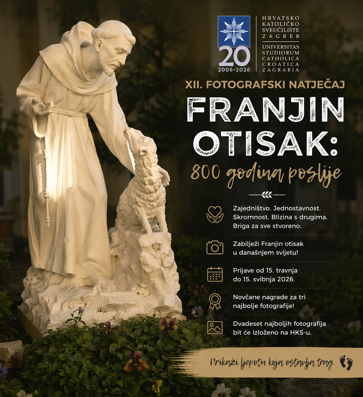 Povodom 800. obljetnice smrti (transitusa) sv. Franje Asiškoga i proglašenja Godine sv. Franje (10. siječnja 2026. – 10. siječnja 2027.), Hrvatsko katoličko sveučilište raspisuje XII. fotografski natječaj kao svoj doprinos jubilarnom slavlju.