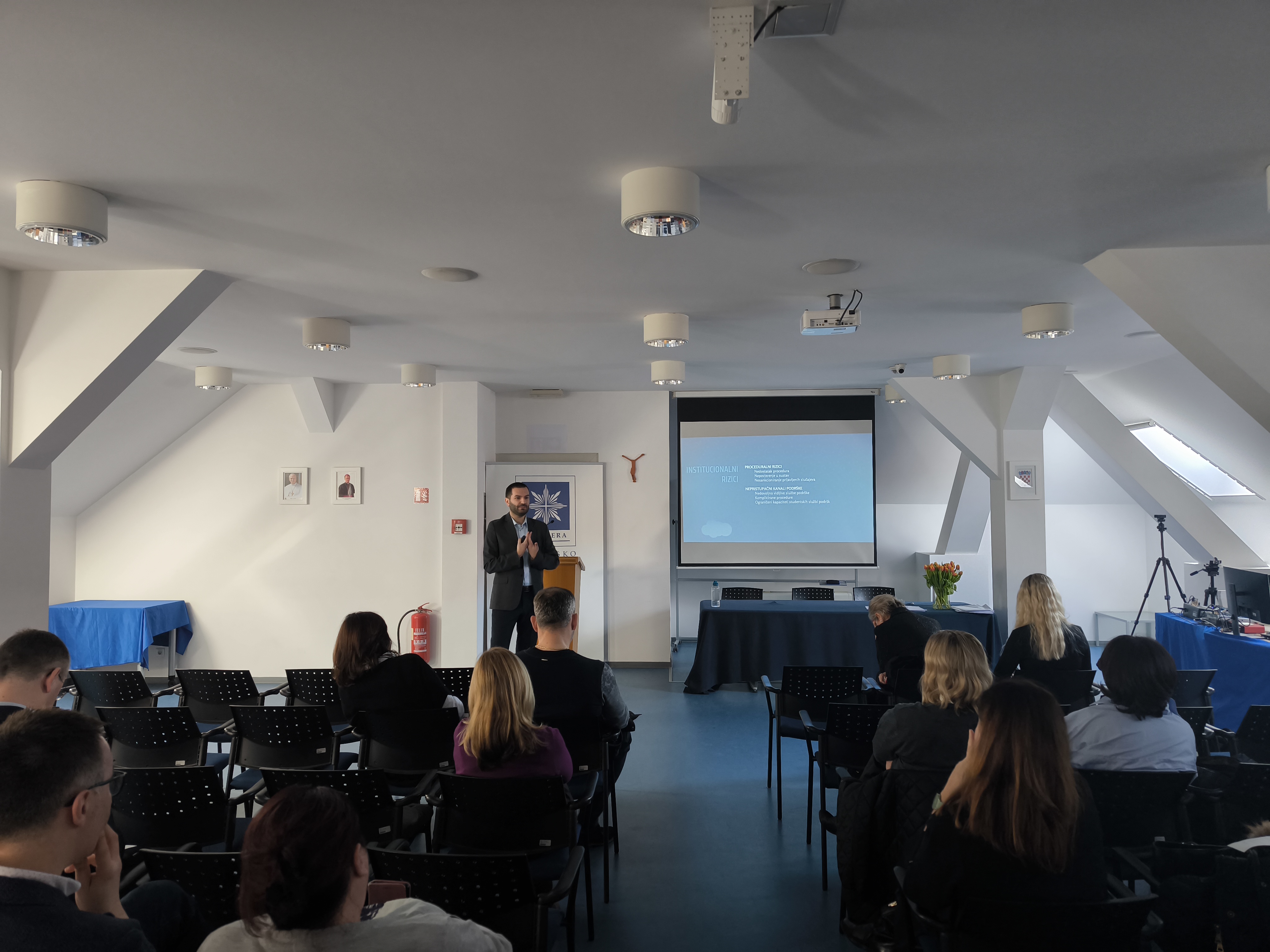 Prvo predavanje je održao mr. Antonio Topalović s temom „Sveučilište kao sigurno mjesto: promicanje kulture zaštite i podrške“.