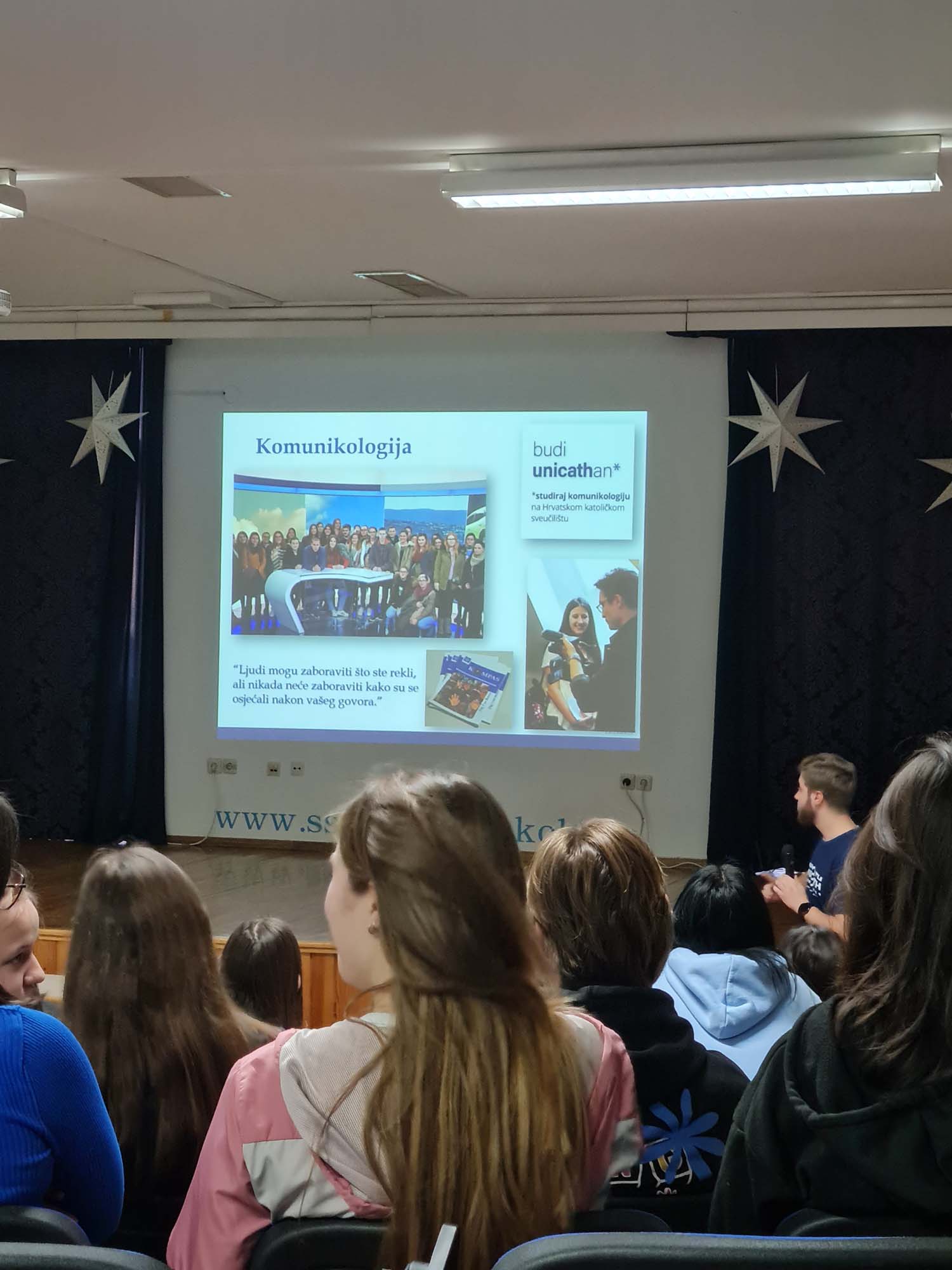 U ponedjeljak 29. siječnja 2024. studenti Hrvatskog katoličkog sveučilišta sudjelovali su na Danima profesionalnog infomiranja u Srednjoj školi Krapina. Naši studenti zainteresiranim učenicima kroz cijeli dan predstavljali su studijske programe HKS-a i posebnosti našeg Sveučilišta. Srednja škola Krapina inače je najveća škola u Krapinsko-zagorskoj županiji koju pohađa više od 900 učenika u 15 različitih gimnazijskih i strukovnih obrazovnih programa.