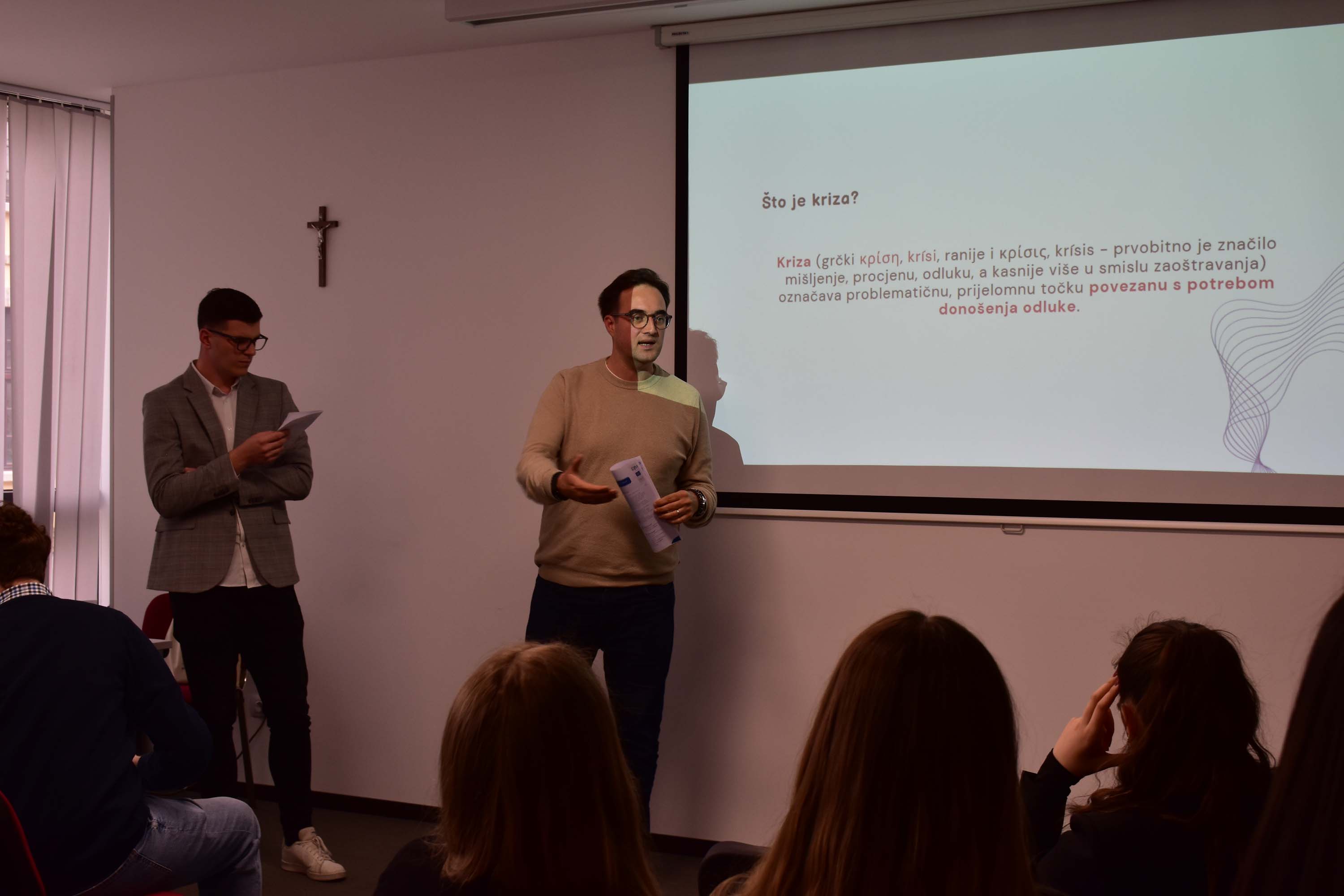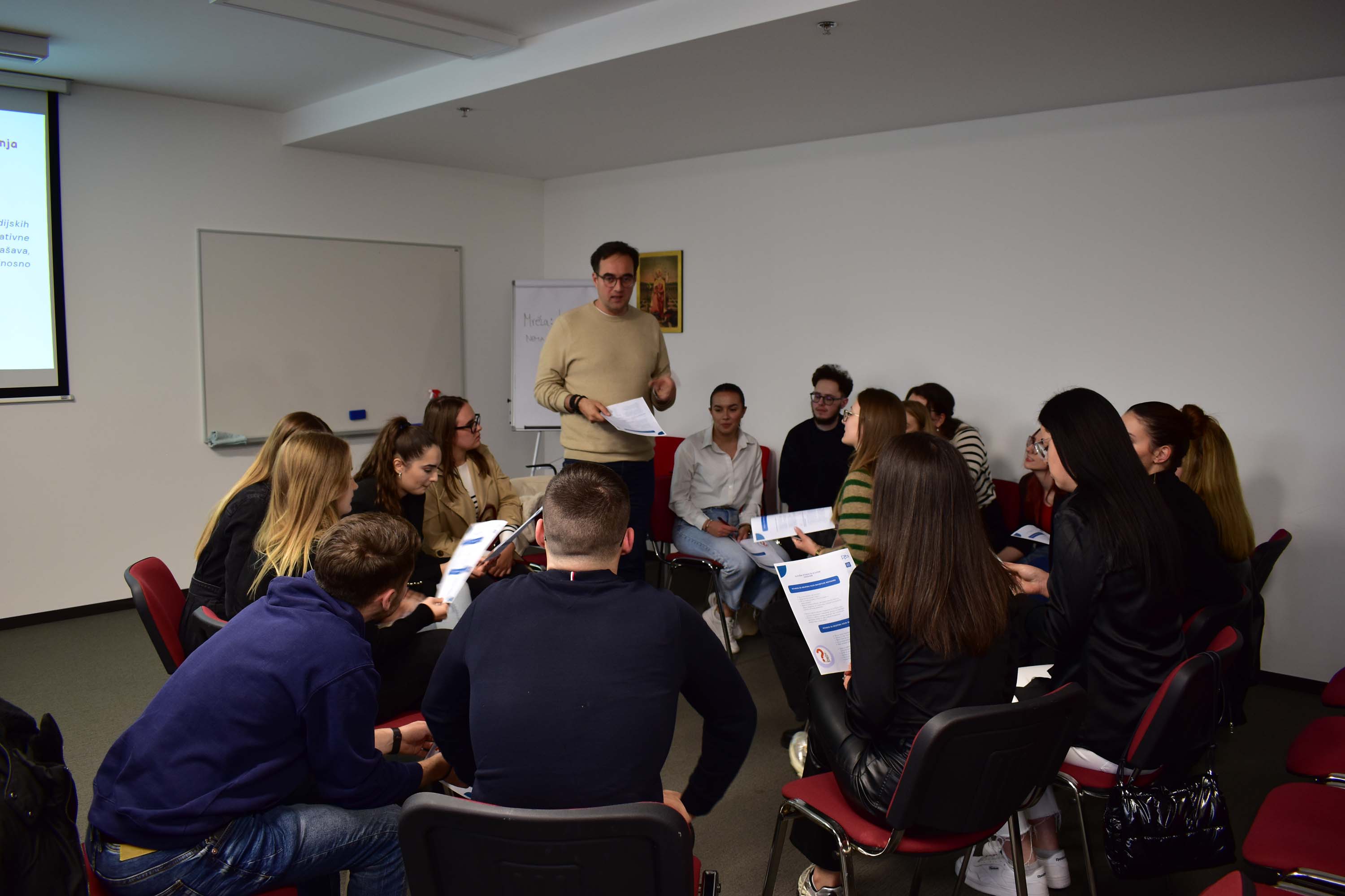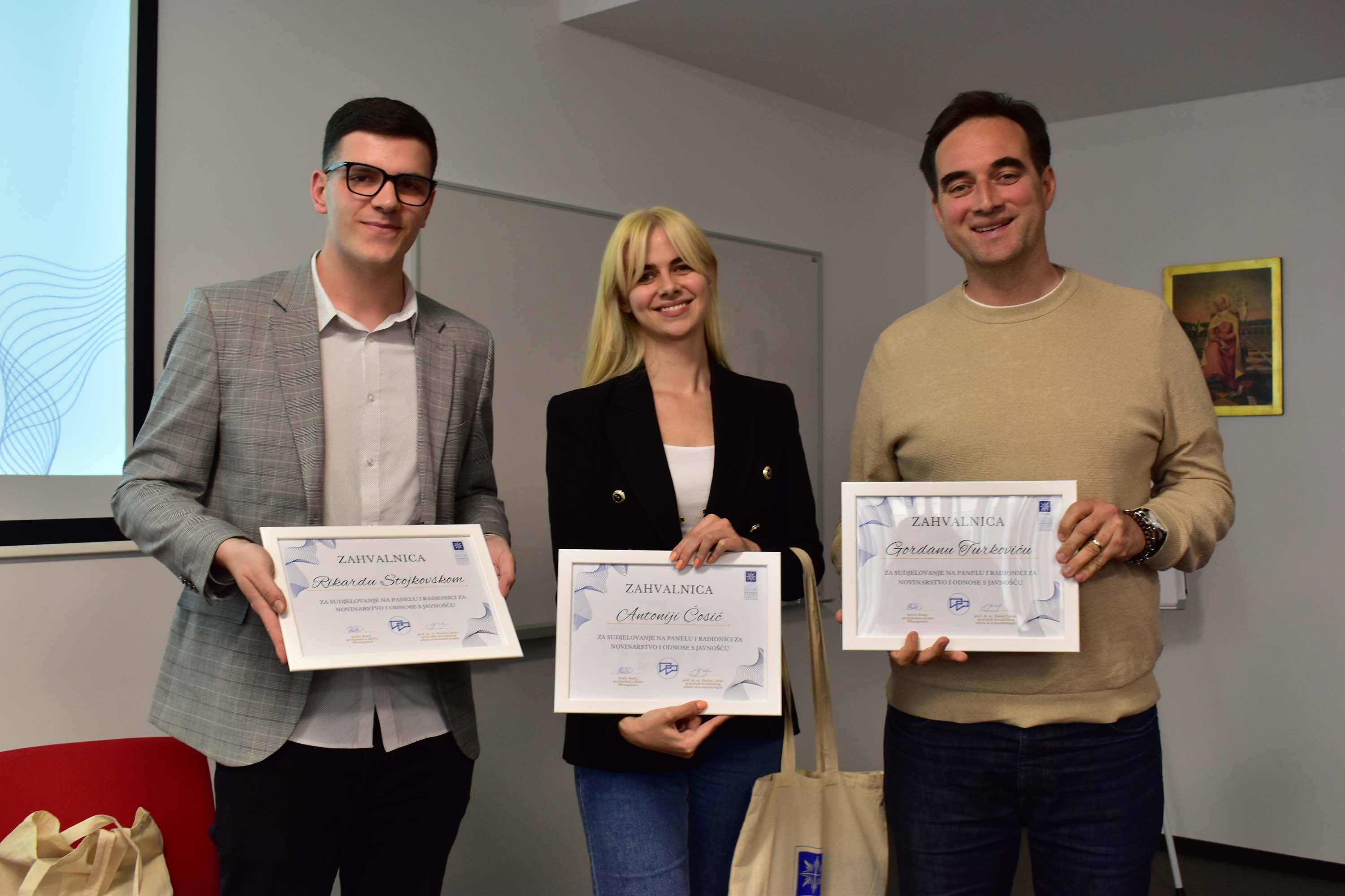 Kolege Stojkovski i Turković održali su interaktivnu radionicu simuliranja krizne situacije iz perspektive odnosa s javnošću i novinarstva. Studenti su se pod vodstvom dvojice profesionalaca našli u ulogama komunikacijskih stručnjaka te su se suočili s izazovima s kojima se novinari i stručnjaci za odnose s javnošću susreću u kriznim situacijama. Radionica im je omogućila da kroz timski rad i suradnju s kolegama dođu do kreativnih rješenja, ali i da od iskusnih predavača nauče kako u takvim situacijama postupati.