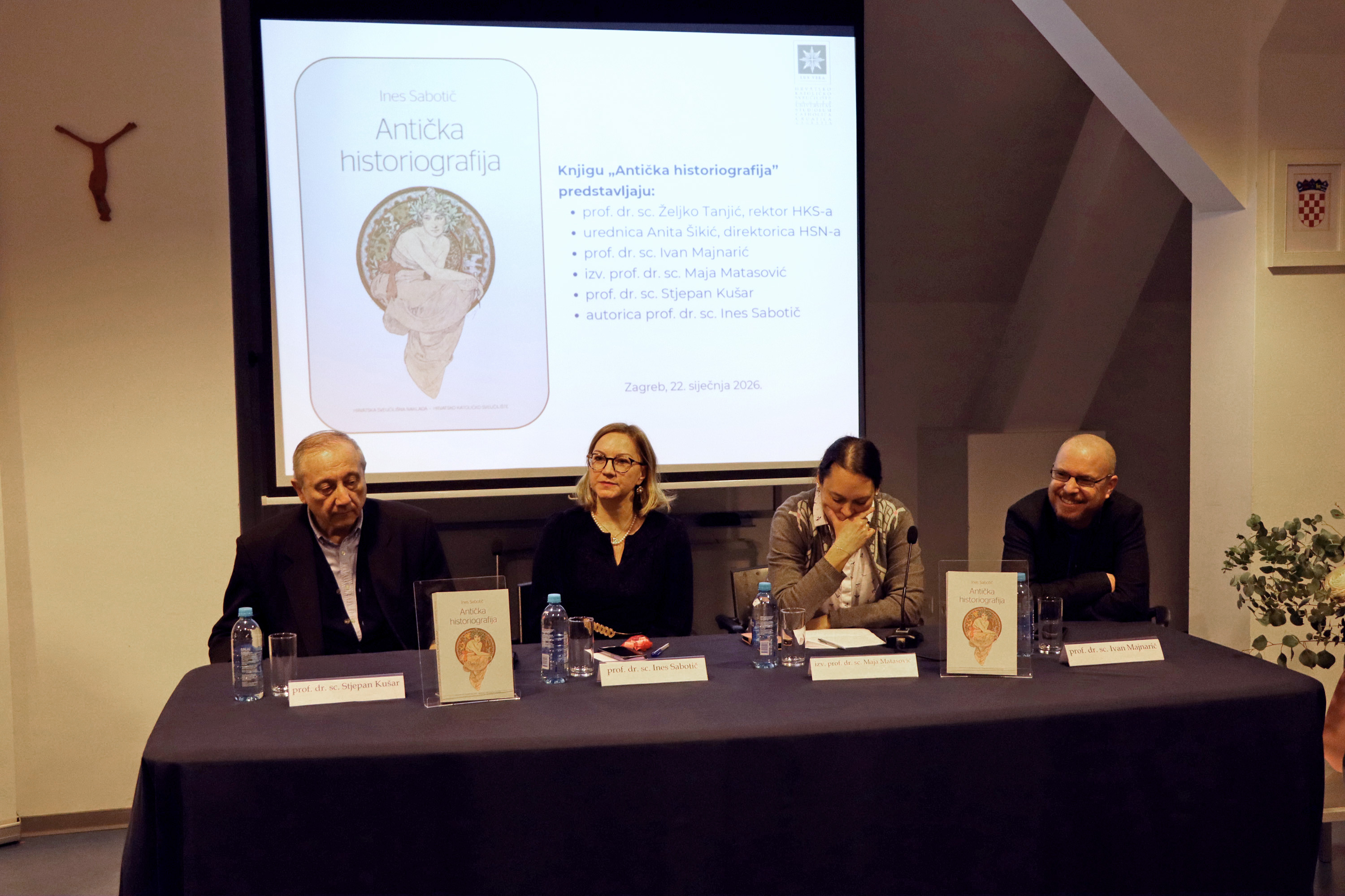 On Thursday, 22 January 2026, the book Ancient Historiography by Prof. Ines Sabotič was presented in the Bl. Alojzije kard. Stepinac Hall at the Catholic University of Croatia (CUC). The book was published as a co-edition of the Catholic University of Croatia and the Croatian University Press (HUP).